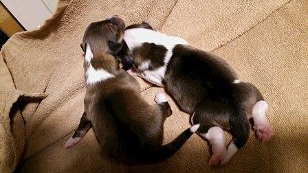 トレジャーの姪っ子ミルキーの孫そうです トレジャーの弟 ジュエル(テリー君)がパパのセーブル女の子全部で5頭最初に、トライが続けて3頭産まれたので『予約すると、その色は出ない』と言っていた通り、セーブルは産まれないかもと思ったら2頭続けて、セーブルの女の子が産まれたそうです5月10日生まれだって今日、送られてきた写真が上の2頭左は、全くカラーなし右は、フルカラー それもちょっと白過ぎどちらかが、うちの子になるのかなぁ~~と思っていた矢先右の子は、亡くなったってお母さんに、潰されちゃったみたい選択肢が無くなったねホントなら、2月7日生の子が我が家の娘になるはずだったんだよねこの子は、テリーの孫だったてっきり我が家へくるものだと思って、名前も考えてあったけど3月15日に会いに行った時の写真左側大きいでしょ誕生日が約1ケ月違うレナートとたいして変わらない大きさだったテリーの孫を迎えたいのはミルキーとトレジャーの面影を見つけたいから・・・・・でも、この子、大きくなりそうもしかすると、ミルトレの血筋ではなく、パパの家系に似てしまうかももしかして15kgクラスレナートはそれほど大きくならないとしても2頭飼いで、15kgは厳しいしミルトレに似る可能性が低いのはねぇ~~って、ことで一旦キャンセルして今回のテリーの子供を待っていたってわけさあ、うちの子になるのかな~~にほんブログ村