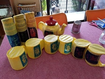 前回の制作から約1ケ月制作意欲が萎えてしまう前にまた行かねば行きたかったけど予定が合わなかったメンバーを後目にシューダンママと二人で行くつもりが愛知から、同級生が急遽参加してくれて、4人楽しく『ものづくり』今回は、大量生産の予定持ち手つきグラスを4個マグカップを2個ステンレスボトル 3本大き目のティーポットで10品ちょっと忙しかったわそれでも、オーナーや、優しいお兄さんに手伝ってもらって無事完成左から、ビーチェ、レナート ミルキー、トレジャー裏側はそれぞれ2ショットマグカップは、カッ飛びトレジャー裏側にミルトレもうひとつのマグカップはプレゼントステンレスボトル3本乳母用はピンクで、ビーチェを彫りましたあと2本は・・・・そして前から欲しかった大き目のティーポットをやっと見つけたのでレナビーこっちはミルトレカップ4杯分の大きさなので、ちょっと重みもあるけどハーブティー飲むのに使うつもりなかなかの出来栄えに、オーナーが『置いてく 見本に』ってふふふっ乳母たちがこんなことしている間・・・・ワンズはこの子たちが来るから・・・・・とこの暑い中オーナーが、朝から芝刈りをしてくれたってお庭で、わんわんダッシュ道の駅で休憩した時はトイレを済ませたら、ベンチを見つけて、下に潜り込んでしまったビーチェだけど芝生の上なら、走れるよ~~~走っては、水この暑さ、尋常じゃないよシューダンママから 給スイカオイチイデシュ・・・・人間もワンコも、いっぱい楽しませてもらいましたぁこの姿勢で停止するビーチェって変夏休みだから、渋滞覚悟して行ったけど行きはスイスイ帰りも予想よりも・・・・で楽しいお出掛けさ~~て、今度はいつ行くその前に、何作ろうかなぁにほんブログ村