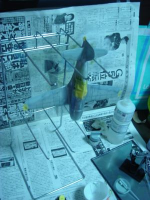 これ、いままで内緒にしてましたが鹵獲雷電にしたかったので銀塗装です。爪まで銀なのはご愛嬌。 ほんとはアルミ貼りもしたかったのですが時間が無いので塗装です。リベットもなし。ハセガワ 【資材・工具】 リベットルーラーこんなのが出たので試してみたかった。動翼部分はグレーにしてマスキング、全体に銀塗装です。塗料はレギュレーションの関係でピー社 のピーピーのピー です。 (ピーは伏せ字)アルミ貼るつもりだったので下地処理があまりできてなくて、アラが目立ちます。何箇所かヤスリがけしなおして再塗装しましたが回復してません。今日はここまで。 ってまにあわないぞ。今日これを塗装してたらコンプレッサーからエアがぜんぜんでなくてこれもこわれたか!とおもってあせりました。逆止弁というのを掃除したら直りました。 スパナであけてみたらサビサビ。クレ556をさしたら一発でした。さすがクレ556掃除し終えてスイッチ入れたらタンクのエア圧のメーターがグングンあがってびっくり。いままでエア溜まるまで数10分かかってました。はじめて掃除したよ。人気blogランキングへただいま53位です。局地戦闘機「雷電」