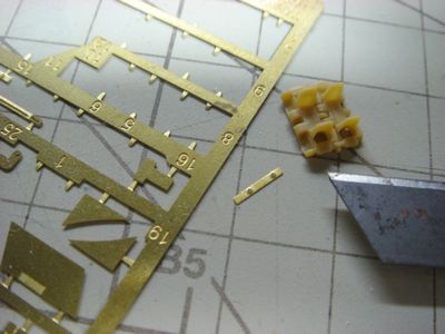 また ピョイーン してしまいました。エッチングパーツをカッターで切り離したところ、ピョイーンと飛んでってしまいました。(真ん中の小さいパーツ)セロテープで貼ってから切るとか知恵は持ってますがめんどくさいのでフツーしません。「エッチングは飛ばねぇだろ」とあなどってたら飛びやがりました。足元に無かったので感でゴミ箱の中を探したら底まで落ちてました。あーあせった。 ↑模型の人気blogランキングです。 今日のランキングは何位? MillitaryMillitax/プラモ製作日記 HOMEへ模型用語辞典
