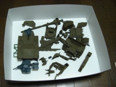 バンダイ HGUC 1/144 アッガイ プラモデル近所の電気屋で4割引きだったので買ってしまいました。そしたらこのパーツに感動。 モノアイカバーなんですが、クリアパーツ保護の為の保護板がついてます。これは割れやすいクリアパーツを保護するためのものですね。飛行機モデルのキャピーなどは輸送中に圧力でもげてしまったりすることが良くありますが、こいつはすごい。 誰でも思いつきそうだけど思いつかないアイデアです。それを実行するのがまたすごいスケールモデラーとしては目からウロコです。ヒルドルブの履帯垂れ下がり機構といいバンダイにはスケールモデル出身の設計者でもいるのかな?ヒルドルブを塗装してみました。 せっかくやる気になったのに吹いてる途中で塗料がなくなりました。ヒルドルブでかすぎ。人気サイトが一目瞭然MillitaryMillitax/プラモ製作日記TOPへ姉妹サイト 万年筆パラダイス!目指せ万年筆の専門店 へ■■■■■■■■■最新商品速報■■■■■■■■■■■★ドラゴン 1/35 Pz.Kpfw.VI タイガーI 後期型(3 in 1)【6月~7月予約】★1/700 フルハルキット 大和(1945) フジミ★ハセガワ 1/32 川崎 キ61 三式戦闘機 飛燕 I型丙 【予約 6月入荷予定】★ドラゴン 1/35 Pz.Kpfw.VI タイガーI 後期型(3 in 1)【6月~7月予約】★【2007年5月下旬発売予定】1/350 南極観測船 宗谷 第三次南極観測隊★タルガ 鋼密度模型 Uボート U-BOOT(1BOX) 【6月予約】★アオシマ 1/350 アイアンクラッド 重巡洋艦 鳥海 1942 プラモデル 【7月予約】★アオシマ 1/350 アイアンクラッド 重巡洋艦 高雄 1942 プラモデル 【6月予約】★ドラゴン 1/35パンサーG w/スチールホイール★【予約】ドラゴン 1/35 ディッカー マックス IV号10.5cm対戦車自走砲★タミヤ 1/350 日本特型潜水艦 伊-400 プラモデル 【7月予約】