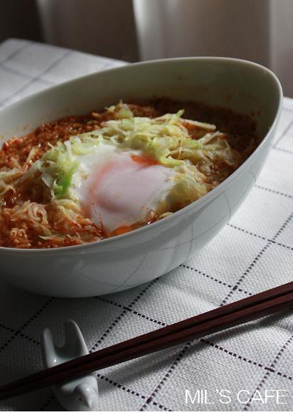 インスタントラーメンをそのまま食べるとちょっと栄養が気になりますよね。とっても簡単に栄養アップする方法をご紹介します。今、一番気に入っているのが、サッポロ一番 ピリ辛みそラーメンチゲ風 です。出来上がり画像がないので文章で書きますね~お湯を沸かし、キャベツを千切りにします。沸騰したお湯の中に麺、その上に千切りキャベツを入れ、真ん中にくぼみを作りたまごを入れます。中火にして蓋をして2分30秒煮ます。その間丼に、スープの素とすりごまをたっぷり入れ少量のお湯でときます。時間がきたら、先にお湯を丼にそそぎ、スープを作り、そのあと麺と野菜と卵をそっと入れ完成。胡麻を増量することで、坦々麺風にもなり、豆板醤、ニラ等をプラスするのもおすすめです!!今日は、久々に週2回頑張っているエクササイズに行ってきました。スカっとしました!!体調は、ストレスとホルモンバランスであったと思いたいです。様子を見るしかないですね…。昨日もいっぱい書き込み頂きました。ほんとありがたいです…。年々体調のすぐれない日も増えるかもしれませんが、やはりストレスが一番よくないですね。色々なことに打ち勝つ強い精神力と肉体をもちたいと思います。ブログとのかかわり方も、皆さんの書き込みへのお返事も訪問も、自分勝手にまとめちゃったり、日記でお返事書いたりなってくるかもしれませんが宜しくお願い致しまーす。作りましたよー!のご報告も嬉しいものですね…。こちらまでハッピーな気分になります。どんどんご報告お待ちしています。 ブログランキング参加中です! 毎日1回3個のバナーをポチっとクリックして頂くとランキングがアップします。 design by ともまお☆