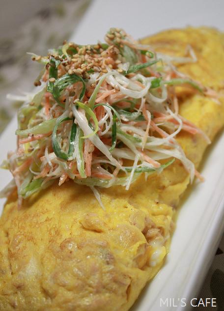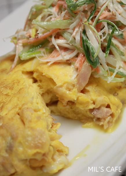 昨日の白髪ねぎが残っていたのでマヨネーズとわさび、味付け塩胡椒であえて、ツナ缶入りのふんわり卵焼きにのっけてみました…。またまた、ヒット!ヘビロテの予感…。*ツナの卵焼きマヨ和さ白髪ねぎのせ*【材料4人分】[A]卵 --- 5個うどんだし(粉末) --- 小さじ1~水 --- 大さじ2~ツナ缶(マグロ)--- 1缶(80g)塩 --- 少々[B]白ネギ(白ネギカッターで)---適量にんじん(スライサーで)---適量マヨネーズ---適量わさび---適量味付け塩胡椒---少々白ゴマ---適量【作り方】[A]の材料を混ぜ合わせ、3回程度に分けて焼く。[B]の材料を用意し、混ぜ合わせる。1.の卵焼きの上に2.をトッピングしたら出来上がり。 ポイントは![A]を混ぜ合わせたら、ちょっと焼いてみること!味の微調整をしてから焼きに入りまーす!卵焼きは、フライパンに[A]を流し込み、箸でかき混ぜ半熟の時に両端を中央に織り込んで3つ折りにし…それを3回繰り返すと、きれいにふんわりできまーす。 ブログランキング参加中です! 毎日1回3個のバナーをポチっとクリックして頂くとランキングがアップします。 design by ともまお☆