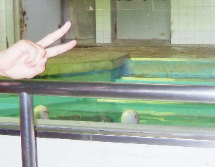 今日は章くんの妹・ともちゃんの誕生日.「今日は,ともちゃんの誕生日だから,わがまましても,許してあげるんよ」と,言ったら,「うん,わかった!」と,あまり分かって無さそうな,章くんの返事でした.良いお天気だったので,おでかけ.章くんの希望で動物園に行くことにしました.カバ大好きの章くん,これも好きなジャガーを見た後は,途中のキリンやダチョウに目もくれず,「Hippo,見る!」と,一直線です.最近,パパにデジカメを貸してもらえるようになったので,1枚だけ撮らせてもらいました.(下手くそです.それを言うと章くん,怒ります.)最後に,ニホンザルの猿山をしげしげと観察して引き上げました.ともちゃんのプレゼントを買いにといざらすへ出かけました.章くんの強い後押しでキティちゃんのキッチンセットにしました.章くんは,自分が遊ぶ気満々でした.「ともちゃんのだから,かしてって言って,いいよって言ってもらわんとダメよ」と言い聞かせました.その場では納得していたようでした.家に帰って,早速,仲良くおままごとして遊びました.喧嘩もせず,二人で楽しめたようでした.その後,あんぱんまんの車に乗って遊ぶともちゃんを見て,自分も乗りたくなった章くん,ともちゃんから車を奪おうとしました.頑強に降りようとしないともちゃん.章くんが引きずり回したので,大泣きです.章くんはパパにこっぴどく怒られました.おしりを何回もひっぱたかれました.「お兄ちゃんは妹を泣かしてはいけない」と言われて,大泣きしながら約束した章くんでした.*お風呂の後,「Happy Birthday to You」をみんなで歌って,ともちゃんが1本ずつろうそくを吹き消しました.みんなにお祝いしてもらって,とてもうれしそうなともちゃんでした.2005.11.14.09:51