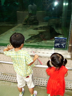 パパのお目当てのコウモリはお休み.見れませんでした.章くんもともちゃんも亀やワニを熱心に見てました.