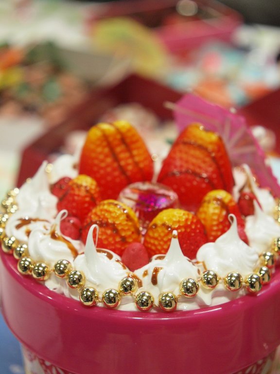 西地区センターまつり無事に終わりました。スタッフの皆様お疲れ様でした。お忙しい中お手を差し伸べくださいまして、真にありがとうございます。当日来館くださった皆様ありがとうございます。男子女子、大人の方も多数参加くださいましてありがとうございます。皆様のお力添えと苦しくても地味に続けた結果、成果を出せたと思います。ほとんど完売しました。なので途中あせって買い足しました。1日目の終わりにタルトベースを追加で作ったりもしました。(あせあせ^^;)残念ながら、講師マイブームのオレンジスライスパーツは当日までに作っていくことはできませんでした。次までにがんばります今回は1日目にイチゴケーキのデモンストレーションをいきなり初め、その大きさに歓声を子供達より頂きありがとうございます。2日目にはそのケーキにチョコソースをかけるデモンストレーション…こちらはう~ん反応うすっ(^^;)(デモンストレーションは予定外でした)この直径25cm位のイチゴケーキの箱は西地区センターの方に贈りました。もし来年もあるなら、マカロンツリーとか3段アフタヌーンティのケーキセットを作ってみたいなぁと思っています。以下はそのイチゴケーキ。写真は私の「モードジュエリー」の生徒さんでアクセサリ作家兼写真家さんの写真です。。以下は当日2日間の様子と皆さんの作品です。↓は講師です。モードジュエリーのレッスンで皆さんと一緒に作った余合先生の作品を身につけていますよ(^^)200円~500円の文字が切れて200円のみ見えています。↓指輪なんですけど…君、君、盛り放題盛りすぎて…大丈夫かい?指輪サンデーになってますよ(^^;)たくさんの皆さんの素敵な作品の写真を載せたかったのですが、すいません。今回数点のみとさせていただきます。載せていただきました写真に基準はありません。何百人いらしたのでしょうか?皆様全員本当に素晴らしい作品でした。ありがとうございました。