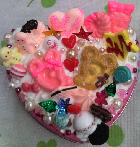 スイーツデコもりもり盛り放題でます~!(食べ物ではありません) 日にち 5月26日(日)藤棚まつりが開催されます。(前回のブログでの案内の5月25日というのは誤りです。すいません) 時間 11時~14時 場所 藤棚地区センター (神奈川県横浜市西区藤棚町2丁目198 ) 対象 小学生以上~大人 男女どなたでも 幼稚園のお子様は保護者の方とご一緒にお願いします。 内容は 昨年度同様に1個200円のストラップのタルトベースやパフェカップと今回は先着20名様限定1個500円の大人気のハートのカンとその他の容器を用意しました。お好きな容器を選んでいただきそこへホイップしますので、お好きなパーツをお好きなだけ盛り付けていただけます。(ただし、一部手間がかかり大量に作ることのできないパーツ類は1人2個までとなります。)ひとり何個でも作っていただけますが、容器代がつどかかります。容器はなくなり次第終了です。所要時間 だいたい15分くらいでしょうか? ホイップとなるボンドが完全に乾くのは数日かかりますが、数時間で手に付かない程度に表面が乾きます。ボンドなので、洋服に付かないように気をつけてね☆上の写真は前回「White Heart Support」さんが主催する「親子でわくわくハッピーイベント」にて、大人の方が製作された素敵な作品です。