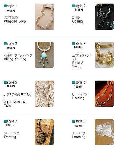 こちらの書籍が今年2010年1月28日発売「ワイヤーワークのビーズアクセサリー」全国の書店もしくは直接講師から購入可能です。今回は上記書籍の出版を期に、体験キャンペーンを実施致します。その体験会アイテムとして、余合先生の新作「モーブカラーの2WAYネックレス」今回は2色から選べて、必要なAワイヤーもついての価格です!商品名:モーブカラーの2WAYネックレス グレイッシュピンク又はブルー2色お好きなほうを選んでいただけます。1キット価格:2,800円+出張交通費東京・横浜周辺に限る。その他お問い合わせ下さい。お友達や知人の方と一緒に申し込まれると講師の出張交通費が割りかんできて、ちょっとお得です^^ノモードジュエリーメイキング講座テクニックの基本でありますメガネ留めだけで制作することができ、リボンの結び方でロングネックレスにもチョーカーにもなる2WAYスタイルです。カジュアルなジーンズからフェミニンなワンピースまで自由自在にその日のモードで楽しめます。■制作所要時間:1時間程度■授業料:無料■キャンペーン期間:2010年2月1日~8月30日costumejewelry2006-toiawase@yahoo.co.jp