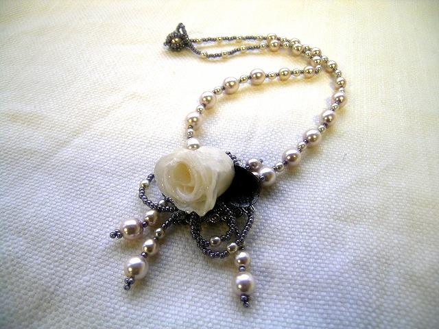 パールのネックレス ホワイトミスト トライアルネックレスキット代のみで1レッスンクチュールフローラを体験していただけます。糸や溶剤・針・花材料・キット全て込み、レッスン料無料! 1個 2900円本や雑誌「高木先生の作品集12月」+「ビースビー11月」+「ビースフレンド11月」に紹介されるキットです。雑誌を見ると分かりますが、特別キャンペーンでレッスン料はありません。(出張交通費往復は頂きます。)(会場の場合はご用意下さい、こちらで会場代はお支払いいたしません。)しかもレッスンは出張レッスンいたします!ご自宅や会場まで行きます!出張範囲は東京都・神奈川県横浜市・川崎市になります。その他の場所はご相談下さい。申し込み方法はメールでcostumejewelry2006-toiawase@yahoo.co.jp件名に「レッスン申し込み」と入れてください。以下の内容を記載してメールをお送りください。折返メールをします。