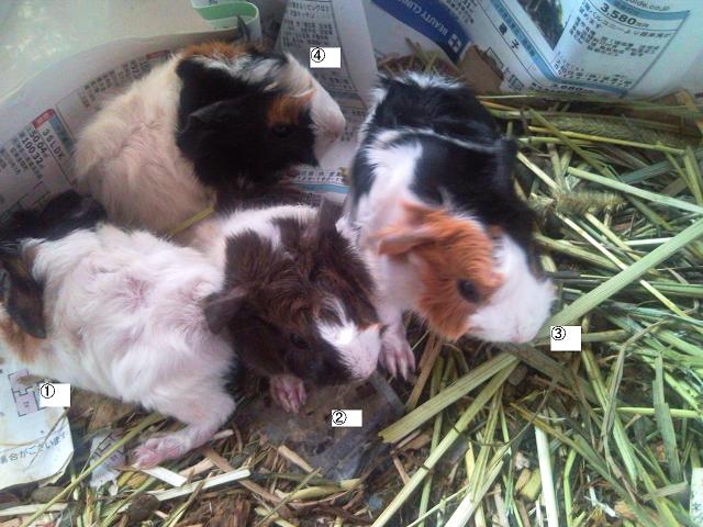 それで、4匹生まれました。性別それぞれ未だ不明です。だって今日生まれましたの。(2011年6月21日生まれ)お引渡しは、生まれたばかりでは、母乳が必要かと思いますので、7月10日前後お願いします。横浜周辺まで来ていただける方で、最後まで面倒を見ていただける方お願いします。パパ アビシニアン ママ レックス のあいごです。1と4はそっくりさんですが、4は右目の上の毛の色が茶色があります。2は2色みたいです。レックスの頭がコロネットのように毛が割れているつむじがこのこが一番受け継いだようです。(少し明るい茶も混じっているようで2色訂正します。3色です。)3 4匹のなかでは1番おちついているかと思いました。もしよろしかったら下のメアドにメールお願いします。 schokolade732-moko12@yahoo.co.jp性別はまだわかりませんので不明です。6月25日更新)3番の子はただ今里親様とお話が進んでいます。(決まりました~)6月27日更新)2番の子は里親様が決まりました。7月1日更新)4番の子は里親様が決まりました。7月9日更新)1番の子も里親様が決まりました。