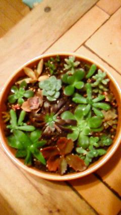 +・・・+・・・+・・・+・・・+・・・+・・・+・・・+・・・+・・・+・・・+・・・+・・・+・・・+こんばんは昨日から何故かなかなか更新できないkurorinです原因は不明です。アフェリを付けた後にエラーが発生しましたとでて、強制的に閉じられてしまうんです何故(??)・・・気を取り直して本日更新です。今日は会社を早退して、いとこのひーちゃんが働いてるお店に行って参りましたひーちゃんはダイソーで働いてるのですが、そこのダイソーは結構、大きいお店で会社の近くのダイソーより種類、品数が豊富なんですそんな中、ひーちゃんおすすめの多肉植物をおすすめしていただき、家に無いものを5点ほどGETしてきましたそして、タブローを作る額が気に入ったものが無かったので、ついつい寄せ植えを作ってしまいました かわいいーーでしょうアップも見てください このかわいさナント説明したら良いものか?上手く説明できないので画像で感じとって下さいね これで、11種類をミックスして入れておりますまだまだ徒長して形が崩れているものや、子供が増えたままになっていたりするものがあるのでちかじか新しい寄せ植えに挑戦したいと思います。しかし、素朴な質問ですが、皆さんは多肉の肥料はどうしてますか?わたしは特別あげてないのですが、やっぱりこんなにかわいいと何かあげたいですよねいい肥料があったら教えてください(^0^)/+++ Pick up +++◇観葉植物◇多肉植物◇ ハオルチア オブツーサ【SA081104】20種類以上の彩りを楽しむサキュレント(多肉植物)サークル【限定商品】インテリア 小さい葉...ユニークな多肉植物アイクリソンプチポット3点セット+・・・+・・・+・・・+・・・+・・・+・・・+・・・+・・・+・・・+・・・+・・・+・・・+・・・+template design *ann