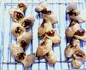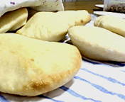 このパンはバターの代わりにオリーブオイルが入っています。トッピングはにんにく、バジル、トマト、塩・・・指でしっかり押さえた所のオリーブオイルをたっぷりたらして焼きます。コレは夏にピッタリ!の塩味が効いたパンでした。出来たての熱々手作りならではの美味しさでした。