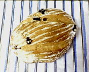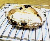 旦那さまリクエストでベリー&クルミのカンパーニュ明日の朝食用です。自分ではなかなか満足な外観角度を変えるとこんな感じです。自家製酵母パンは時間がかかる・・・・焼きあがってガスオーブンから出すとき「どんな表情かな。」と対面する時が、とっても幸せこの感動があるから焼き続けてます。 そして、酵母おこしで大量のレーズンが余っているので久しぶりに「ぶどうパン」外に出た「レーズン」が焦げてしまいましたカット!!焼き上がりをフーフー言いながらいただきました。焼きたて最高