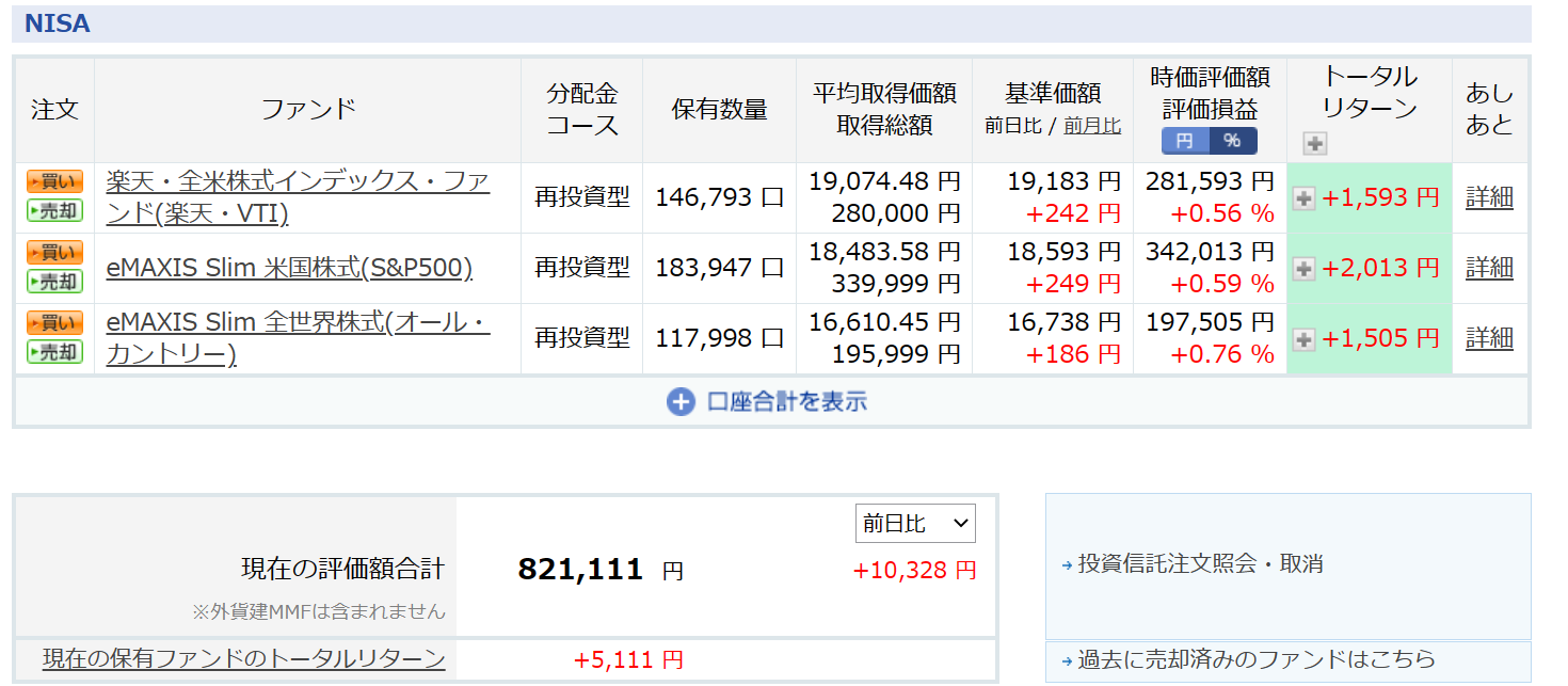 プラス5111円ほどになってました。時期によって結構上がったり下がったりしているので、一番上がってるときはもっとあったかもしれませんが。
