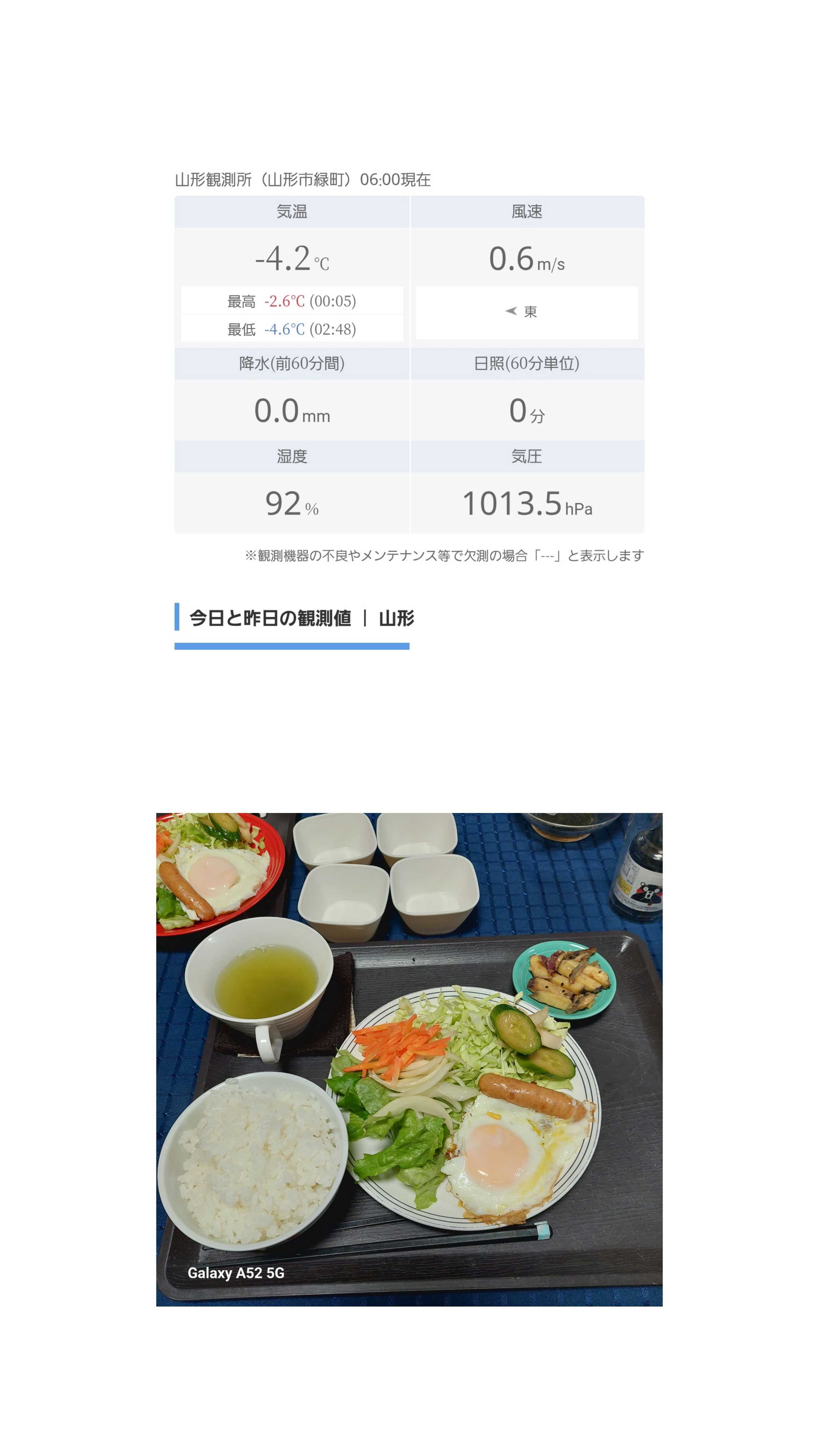 おはようございます♪そろそろ山形でも花粉の時期?(まさかね)最近鼻水、ムズムズが始まりました咳喘息のあたりから通院していて、アレルギーが出てるって言うのでそういうのもあるのかなぁと鼻炎薬飲んでいます^^;21日(水)●マイナス4度でも寒かったというのに−−−−−−−理由あってこの日は白飯〜●こんな天気でしたから〜この時の一歩しか外に出ないよ−−−−−−−ヽ(`▽´)/●12月に買って、年末に息子が来た時に食べ残ったナンを冷凍していたので3人女子ランチで食べました●焼き芋作ってたのでおやつに夕食は餅でした22日(木)●朝と昼昼は次女が、作り方の簡易版見つけたと言うおにぎらず次女に教わり作ってみた●次女カメラより●おやつに 長女がどこぞからもらったというクッキー🍪夕食は、豚キムチ鍋にうどん●沼っては居るけれど、悩みどころはこの丸めてあるくしゃくしゃの1度編んでほどいた毛糸🧶(貰い物)これも年数経ってるので使ってしまいたくなんとかかんとか使って編み終わりました※後日ブログににほんブログ村O型日記ランキング