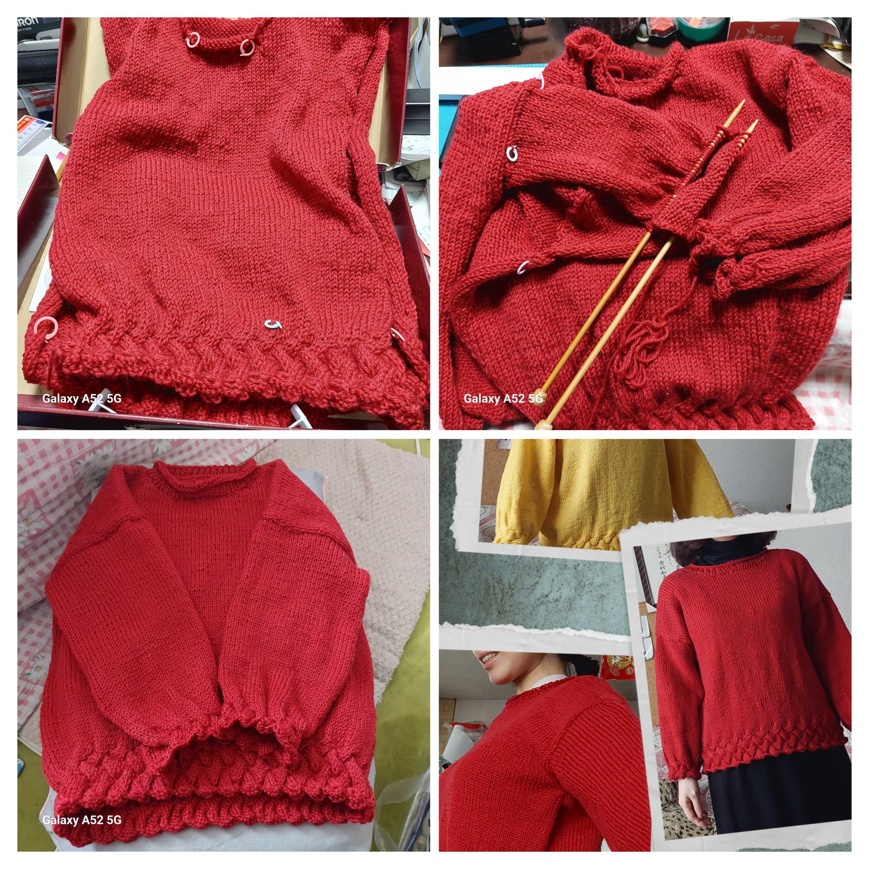 おはようございます♪いつも訪問いただきましてありがとうございます!コメントと応援🚩😃🚩感謝しております_(..)_今週も始まりました(’-’*)♪前回、編み物🧶話は●2月8日ブログ 編み物🧶沼 君はニッティングHighを知っているかここまででしたその後●先に、赤糸を編み●すぐ続けて黄糸を編み2枚とも出来上がってからスチームアイロンし、繋いで仕上げて娘たちへこの袖口、裾のモコモコ模様が可愛くて衿はこんな感じ節目節目に長女には人体模型になって貰いどんな感じか、確認しながら編んでいました●この3枚とも、こちらのニット本から我が家仕様に胴部分の長さをプラスしてますけど(※胴長短足)とても軽くて着やすく動きやすいセーターです−−−−−−−でねこの本で編んだ1作目のセーターですけど頭入らないかも疑惑でとても広口にしちゃった衿でも実際目を増やしすぎて広口過ぎて気になって着られず(爆)●本のとおりに編み直しましたこの毛糸とても気に入って遠い昔(25年ぐらい?前)に買って随分と寝かしていた訳ですが💤編み直したことにより、どんな感じか客観的目線で見たくて、上の赤黃ニットのように人体模型でGO〜!としたかったのでパパに人体模型になってもらったところGO〜!となった途端、パパが逃走−−−−−−−🏃食い逃げじゃなく、着逃げ−−−−−−−(泣)まあよい、この毛糸もう10玉あるからもうしばらくあるであろう我が人生でオソロに見えないような何かを作成する予定ですくっそ~ヽ(`Д´)ノプンプン●パパの脳内メーカー作って晒してやるぞあとは一旦、小さいものをと次々●1日一双ペースで4人分のハンドウォーマー作成これまた1作目の試作品を(自分用に作っていたんですけど)例によってパパがね※100均で良いのが売ってるから買って来いよ〜と申し上げても私が作れば実質タダで手に入る、絶対100円も出したくない男●最後に編んだ物が右のこの糸ももらい物の1個だったのと、アクリル毛糸だったので唯一リブ編みにして見ましたとてもふんわり触感直接肌に触れるものはアクリル毛糸がベストで、他のものはチクチクしますな(;´д`)トホホ…左のは右往左往して、残り少ない糸が足りずに上のものと違った糸使用でやってみてどうだろうと●下画が完成品その後も編み物🧶沼 ニッティングHighは続いております今週もよろしくお願い致します🙇にほんブログ村O型日記ランキング
