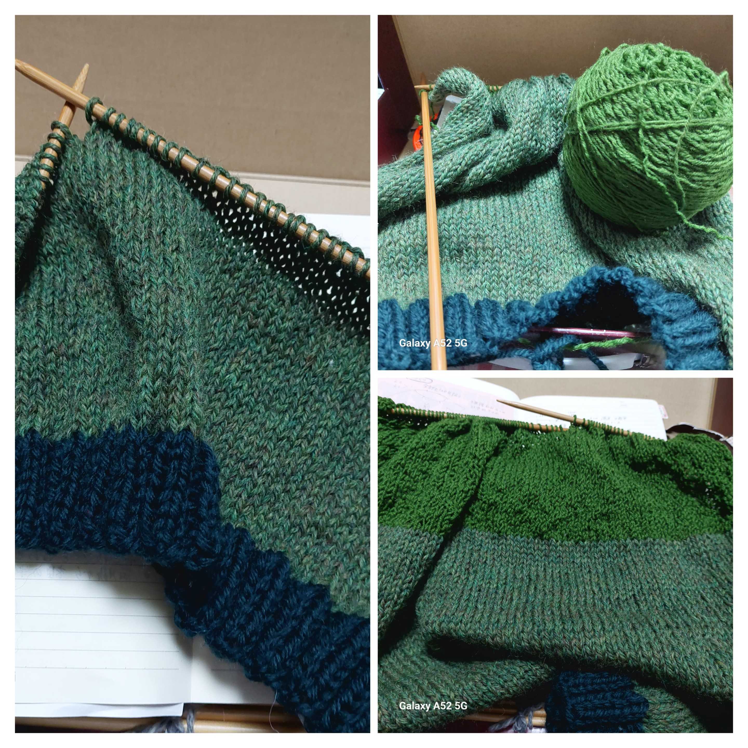 おはようございます♪今日は参院選👉️衆議院投票日ですが、最強寒波到来という予報で出歩く気がなかったため期日前投票済ませて置きましたが同じくそのような方々が今回は多かったようですねあとは開票結果だけです相変わらず暇さえあれば編み物🧶編み物🧶1月20日からは●グリーン系それぞれ微妙な数の毛糸の消化のため3種類右上は特に使ってしまいたく下 こうなったYouTube視聴してても、家族と話をしていても手だけは●せっせと編み続け●ゴム編みして、身頃や袖を綴じてアイロン●上の毛糸がギリギリだったのでいろんな糸を使いました27日には出来上がったヽ(`▽´)/●実は、前身頃と後身頃を両方前身頃として着用できるように前身頃の衿広めのを2枚合わせて●片方はベージュ系、もう片方はピンク系着用するときは気分でどっちかを前にしてみる私にはベージュ系が似合う😸翌28日には●上の後身頃を始めて、下のは30日〜前身頃の裾●止まらない編み物🧶熱気が付くと編んでしまい、編み終わっても次のものを始めてしまう編んでいても、後半には次作を考えて毛糸を用意して待機してしまうお風呂に入っていても、次に進む工程を外出して帰宅しても、さあ編み物🧶編み物🧶さえしていれば、気分は上々👆️👆️ちょっと時間がある(炊飯中)なんて時も5分だって無駄にやしないぜサクサク動けちまう編み物をする時間を作るのと、用事済ませるために1日の時間の使い方を考えるようになりました当に編み物🧶中毒ニッティングHighだ2月2日には●ほらもう次、、、ちなみに赤いのは、一旦置いていて黄色いほうが出来たら2枚まとめてアイロンして綴じて完成させようとしているところほら、今日も、、、、、ニッティングHigh−−−−−−−ヽ(`▽´)/にほんブログ村O型日記ランキング