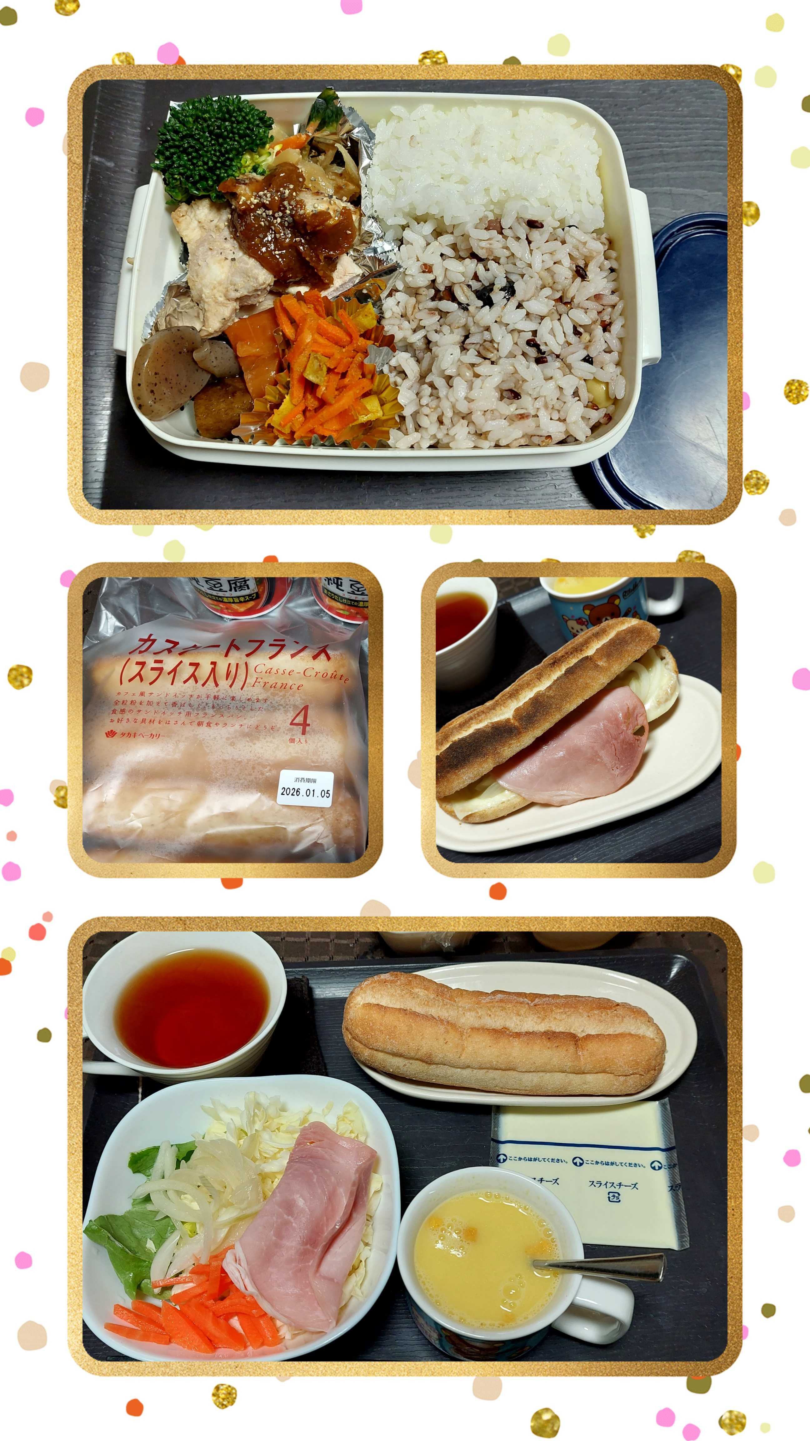 おはようございます♪冬型、氷点下、雪が−−−−−−−と言う予報ではありますが本日我が家は給料日なので、🏧行ってくる予定🗓️まだまだブログはお正月明け話1月5日(月)仕事始めでした●普段はパパに、自分で詰めてけ方式のお弁当も久しぶりに私が詰めたので画像があります(笑)東京のスーパーで買ってきたタカキベーカリーのカスクートフランスで朝ご飯これ、ソフトタイプのフランスパンなんですよYouTubeで見ていて食べたかったんだけど、私が知ってる範囲の山形のスーパーに売ってないリベイクすると、コーヒーショップチェーン店のアレのよう👍️もう一度食べたいなぁもっと買ってきて、お得意の冷凍保存すりゃ良かった−−−−−−−●お昼は餅と、野菜いっぱい入れた汁物、おせち残りきれいに盛り付けてある時はほぼほぼ次女が作ったり用意してくれた日ですねそう言えば、息子が帰省してる間に家で食べられないままだったおせちを「いくつか持っていきたい」と息子が言うので保冷箱に入れてしっかり保冷剤入れて東京まで持ってったけど到着したとき、保冷剤がしっかり凍ってるままでヒエヒエで運べました👏👏👏帰りの日もまだ凍ってる部分が多くて、冷蔵品買って入れても大丈夫なぐらいでした✨先述の通り、お正月はスーパーもお店も休みだったところが多かったのでもっといろいろ持っていけば良かった−−−−−−−●と言うことで、食欲が回復して来た息子牛肉で巻いたやつ、ばあちゃんがくれたんやで〜ヽ(`▽´)/いいなぁ−−−−−−−ローソンストア100買っても貰いに行く日も必要だしなぁ~(;´∀`)ドーナツ🍩食いたいなぁとかれこれ12月ぐらいから思ってるけど健康診断&大病院の検査が終わるまでは、、節制しておきたく、普段は甘い自分に厳しく生きている頃でした●この日夕食も次女が作ってくれて年末買った豚ロースを味噌、甘酒、生姜とニンニクすり下ろしの味噌ダレに浸けて冷凍していたものを解凍し、焼いてくれました。貰い物の甘酒パック(150mlぐらい)、栄養バッチリ✌な私、なかなか飲めないでいたんですけどこうして料理に使いました^^;16日(火)●OKストアで買って来たパン店舗で焼いてるベーカリー部門は午前中でも残り少なかったんですけどわざわざ遠路はるばる持ち帰りたい理由がここに👆️●昼 これも都内で買って来たので久しぶりに食べました辛いけどおぼろ豆腐がいい具合、フリーズドライなのに不思議−−−−−−−あさりは出汁だけだけどうまい😋●編み物🧶沼ってたら、次女が分けてくれた十一屋の「りんごのしあわせ」と言うアップルパイりんご、(゚д゚)ウマー県産のりんご使ってるんですって●夕食には、これも都内で買って来たブツ✨️お好み焼き粉ぐらいはどこでも売ってるけど、冬は買い物行くのも億劫一回で済ませたいよ普段お好み焼きって、レシピで粉など混ぜて作ってるんですが、、コレが私しか作れない体になってるので(ー_ー;)次女にとってお好み焼き粉を見るのも使うのも食べるのもお初、でも作り安そうだし食べて美味しかったので、「こういうの買っておくと誰でも作れるからいいね」と次女はい( ´ ▽ ` )ノそうします👍️7日(水)●これも以下略−−−−−−−超熟ロールレーズンもよくいくスーパーには置いてないヽ(`Д´)ノプンプン以前は、息子が仙台在住だったので仙台で手に入れてたのよ●年初めのお医者day地面から車からあらゆるものが凍ってツルンツルンでした(;^ω^)整形外科行っても余裕で心療内科行けるはずが、ちょっとギリギリになってしまいお医者からお医者まで車で一分程度って ⭐️ネ 申⭐️、、、が、季節的なものなのね−−−−−−−患者さん多過ぎ問題で、予約時間から40分後に呼ばれて(10時半の予約が呼ばれたの11時10分過ぎ)2分診療−−−−−−−ここの中で一番、私が元気かもしれないしほかの人で忙しい先生、頑張ってください🙏薬局も混みました座れない人がいるの初めて見たかも。と−−−−−−−帰宅してお昼やっぱりお気に入りの川崎ニュータンタン麺食べました辛いけど美味いが勝ってる●この日は七草山形では七草粥ではなく、納豆汁を食べる日作り方を次女に聞かれ、指導するのみで次女が作ってくれましたたっぷり納豆汁を味わう年一回しか食べないけど、美味しかった(๑´ڡ`๑)納豆汁ね、、、あれは興味深かったわ(何度も嗅げるニオイ)にほんブログ村O型日記ランキング