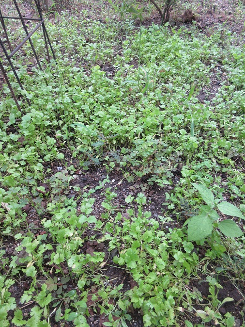 ガーデンでは、雑草と一緒に<コリアンダー>が群生しています