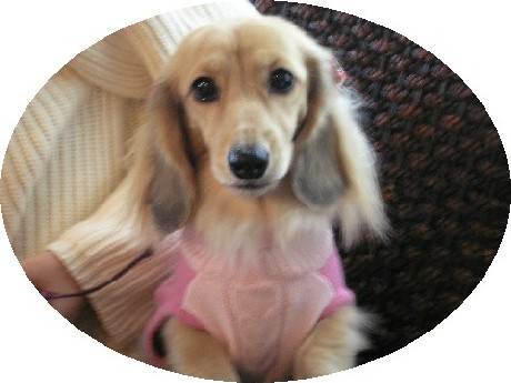 今日の2Wanレオン5.85kg パール4.15kg今日はオシャレして お出掛けです♪ピンクのセーターにパールは初めてのリボンで可愛くきめちゃいました。車酔いが少しマシになって、パールは1度だけ吐いちゃいましたがレオンは大丈夫でした。(*^_^*)v ヤッタネ!カフェに着いたとたんパールが粗相をしてしまい慌てちゃいました。f(^^;) ポリポリけど、ふと見ると隣に大きなウ○チが~~!(*〇o〇*)ゞ ヒィ~ッ!どう見てもダックスのものとは思えない!しか~し、お店にはダックスを連れたお友達しかいない。だれ???ま、誰のでも気にならないので一緒に処理しましたけどね。(^-^ ) ニコッ今日はダックス9匹揃いましたぁ~♪v(≧∇≦)v イェェ~イ♪大好きなパスタを注文して食べていたら、誰かがパスタを食べられたぁ~!と、叫んだのでよそ見したら私もレオンに盗み食いされました。( ̄□ ̄;)ガーン!今日の2WANはお行儀が悪くて恥ずかしいです。(;-_-) =3 フゥけど、WANのケーキは注文してあげる甘い私でした。パールは上品にスプーンで食べるから、あげていたらレオンが横から上に乗ってる美味しいムースの部分を盗み食い!「またかよ~!」( ̄ヘ ̄)凸 ムカッ自分のがあるのに~!パールが可哀想なのでレオンの上の美味しい所はパールにあげました。( ̄ー ̄)ニヤリそんなバタバタな食事だったので今回は前回と違うケーキだったのに写真が撮れませんでした。m(_ _)m ゴメンナサイ。娘と一緒に行ったのでバイトの時間もあって先に失礼する事にしましたが、せっかくなのでダックス9匹揃えての撮影をしました。大変でしたが上手に撮ってもらいました。(*^m^*) ムフッ♪「あたち、可愛い~ぃ?」「ボク、カッコイ~イ?」