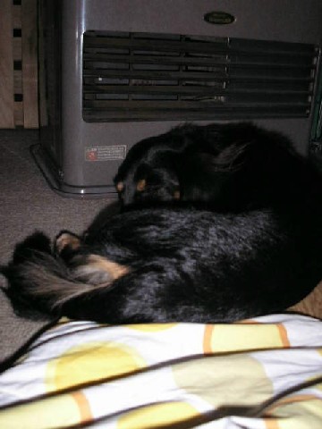 Wan達も寒かったのか、ヒーターの前に集合です。
