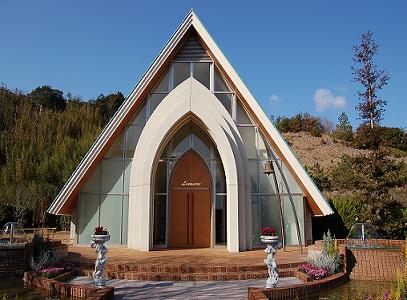 こんにちは~☆・・・とアイサツしましたが、空が暗くなるのは早いですねさてさて、先日ブライダル・フェアについてご紹介しましたが、本日はそのブライダル・フェアで使われたチャペルについてご紹介します。当館のチャペルの名前は「ルミエール」お客様みなさまに、「当館のチャペルの名前をつけてください」とお願いして名づけてもらいました。晴れた日には、三角お屋根の建物がくっきりと浮かび上がって可愛らしいですよチャペル横にはホテル本館へと繋がる道があるので、式が終り次第披露宴会場に行くことも可能ですよ(^▽^)上記は内装の写真です。イベント時に撮ったので、イベント用の飾りとなっておりますが・・・。昼には明るい太陽がカップルを見守り、夜には優しい空気がカップルを包んでいますよ^^淡路島はリゾート地。リゾート婚にはあこがれるけれど、海外はちょっとなぁ~という方には淡路島での挙式がオススメですよ
