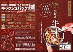 こんばんは~。今日も淡路島は朝に雪が降りました(><)皆様のお住まいのところはいかがでしたでしょう?みなさまが風邪もなく怪我もなくお元気に過ごしていらっしゃるといいのですが今日は淡路島を美味しく観光しよう☆ということで、淡路島の一押しグルメをご紹介します。・・・皆様、淡路島牛丼ってご存知ですか?淡路島名産の玉葱と淡路牛を使った特製牛丼です各観光施設で色々な趣向を凝らして、オリジナル淡路島牛丼を作っています。上のお写真のパンフレットは、淡路島の北から南まで、各観光施設の淡路島牛丼について紹介しています。このパンフレットに書いてあるお店は、このパンフレットを発行した「淡路島観光協会」が主催する「ぎゅうスタ」に参画しています淡路島牛丼を食べて下さったお客様に、各観光施設がスタンプを押させて頂きます。そのスタンプの集まった数によって、豪華商品がもらえるんですとっても美味しい上に、楽しい淡路島牛丼。是非召し上がって頂きたい一品です。さて、このブログを書いております私のお勧めする牛丼は、当館から車で10分のところにある「大鳴門橋記念館」のレストラン「うずの丘」が提供している牛丼です。庶民の味「牛丼」と呼ぶにはちょっと申し訳ないくらいの分厚くてジューシーなお肉がとっても美味です。そして、副菜としてついてくるスープは濃厚な牛乳の風味がとっても贅沢な、他所では食べたことのない美味しさです。・・・実は私が好きなのは牛丼ではなく、このスープだったりします(笑)私の友人にもここに行けって紹介したんですけど、「牛丼の美味しさにびっくりした!!!けど、あのスープ、あんなに美味しいのはじめて食べた」って感想をくれました。・・・あれ、淡路島牛丼の紹介じゃなくなってる・・・ということで、本日はいったん終了します(笑)