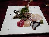 当館は福良の港町にも近いということで、よくお客様から「美味しいお魚が食べれるレストラン知らない?!」とお尋ね頂きます。そんなお客様に当館がオススメするレストランが「万代」です。レストランといっても、純和風な店内なのでお魚の美味しい居酒屋だと思って下さいませ。万代さんは本当にお魚が美味なお店です。先日ちょっと奮発して行ってみたら、ちょっとびっくりなお造りを出してもらいました。それが下のお写真です。真ん中にアジがどーんとあって、蛸・鯛・ひらめ・・・と切り身が並ぶんですが。アジが活造りで、口がパクパク動くんです!!最初は初めて見たので「ウワー」と驚いたんですが、これぞ港町の醍醐味と嬉しく眺めました。もちろんお造りも全て美味しく食べましたよ!ほかにも焼き魚、煮魚、てんぷらと・・・お魚天国でした。お魚好きは見逃せないレストランですよ!是非南あわじにおいでの際は、万代さんにおいで下さい。