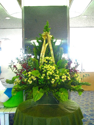 ホテルフロントにはいつも活花が飾られてます四季折々の花や草木を使用して常時飾っておりますが現在はクリスマスに合わせた仕様になっています毎年恒例の白く大きなツリーも目を引きますが、こちらにも是非ご注目下さい