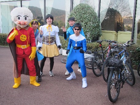 周囲が約150kmの淡路島では、週末や連休にはよくツーリングやサイクリングをされている方を見かけます南淡路ロイヤルホテルは淡路島島内でも南端に位置しているので中間地点としてそのような方の宿泊にご利用いただくこともよくありますあいにく屋根付の駐車場、また駐輪場がございませんのでバイクでお越しの場合は駐車場をご利用いただき、自転車の方は館内にてお預かりをさせていただいております昨日は寒さが厳しくなってきた中でも、サイクリングでお越しいただいたお客様がいらっしゃいましたお預かりしていた自転車をお渡しし、これからまた自転車で出かけられるのですが、衣装が素敵だったので折角なので記念写真を撮らせていただきました淡路島のサイクリング旅行、是非楽しんで行かれて下さいね無事に完走されることを願っておりますご利用いただきありがとうございました