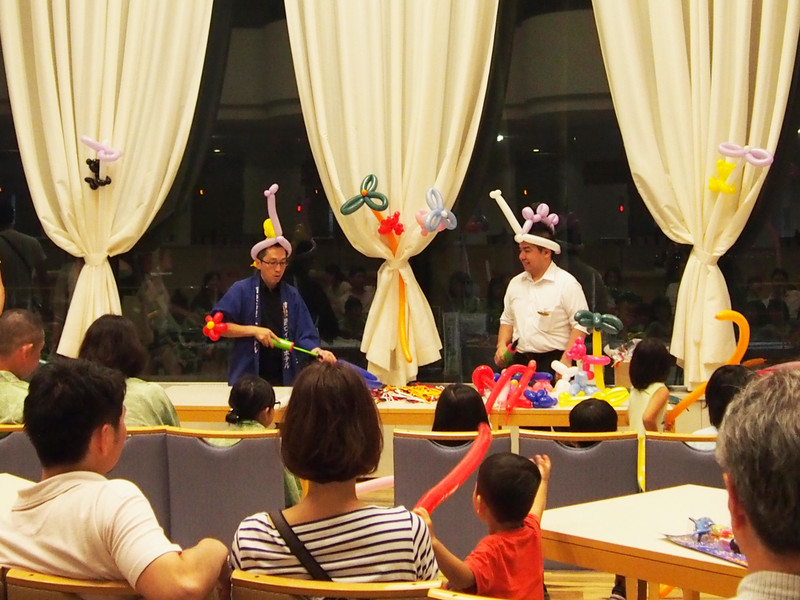 南淡路ロイヤルホテルの夏休みイベント☆縁日以外にも様々な館内イベントを開催しています♪こちらはバルーンアート風船教室です!風船でワンちゃんやくまさん、お花や剣、恐竜などいろいろなものを作ることのできるバルーンアートですが、比較的お手軽に作ることのできるバルーンアートにみんなで一緒に挑戦!!こちらもたくさんのお客様にご参加いただいておりますヽ(´∀`*)ノ8月30日まで、毎日20:00より1階ティーラウンジ「すいせん」にて開催しております♪(作成される方お一人様100円又は100ポイント)皆様のご参加、お待ちしております☆夜の時間帯にティーラウンジ前では「かき氷」・「わたがし」・「ソフトクリーム」・「生ビール」・「オリジナルカクテル」の販売も行なっています!大きくてふわふわなわたがし作成中・・・♪顔よりも大きなわたがし完成~☆お父さんの頭にくっつけないように、気をつけて食べてね♪ソフトクリーム・わたがし・かき氷 各300円生ビール 1杯500円オリジナルカクテル(ピニャコラーダ・すだちジントニック・モヒート) 各500円ホテルオリジナルキャラクターのたまくんがかくれんぼ!?たまくんをさがせ☆ゲームもやってます♪(´艸`*)ふたりの「ニセモノ」がかくれていることもあるので、間違えないように気をつけてね!ゲームをクリアして、「おたのしみ特典」をゲットしてね♪♪たまくんをさがせ☆ゲーム 1回300円★夏休みイベント詳細はこちら★※上記金額には消費税・サービス料を含みます。※20歳未満の方、お車等を運転される方への酒類のご提供はできません。※メニュー写真はイメージです。