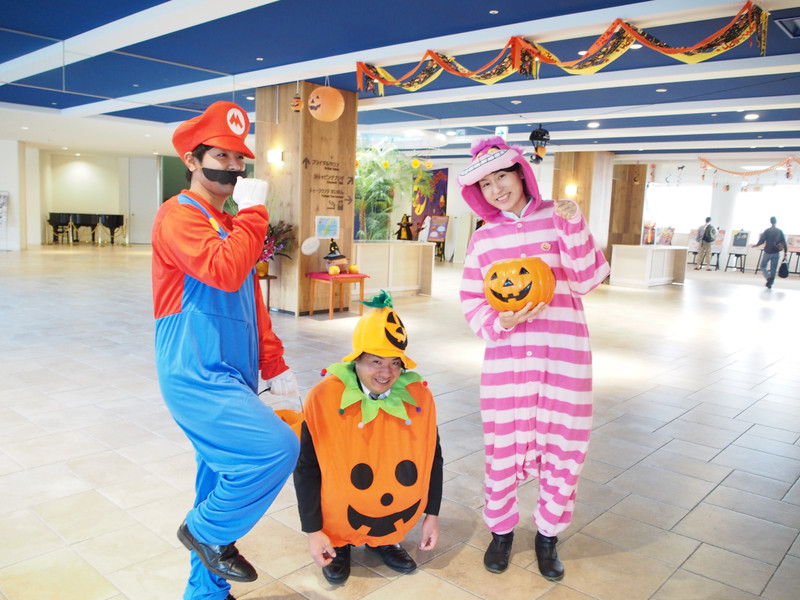 3連休3日目!みなさまいかがお過ごしでしょうか?10月は【ロイヤルハロウィン月間】!ということで昨年に続き、仮装したスタッフがロビーに登場しました♪新キャラクター、増えました(´∀`*)キャラクターとスタッフのチョイスはバッチリだったと、自負しております!フロントスタッフのUさんは、昨年に続き「かぼちゃのおばけ」の安定感が◎◎◎。白雪姫は毒りんごをお客様に・・・・ではなく、「ハッピーハロウィン♪」ちょっぴりお菓子をお客様にプレゼント♪♪チシャ猫もお手伝い♪この日はアリスではなく、白雪姫と一緒でした(笑)お客様のお出迎えにも仮装姿で登場!驚かしてしまった方、ごめんなさい。。。お願いすると、こんなポーズもとってくれます♪仮装スタッフは時々現れるので、見かけた方はとってもラッキー☆かぼちゃのバケツやカゴを持っているスタッフには「ハッピーハロウィン!」と声を掛けると、ちょっぴりお菓子がもらえます!見かけた方は是非話しかけてみて下さいね(*^_^*)館内で行なっている、「スタンプラリー」ゲームの【かぼちゃの目印】をつけている可能性も高いので、ゲームの参加者の方は要チェックです♪★12月31日開催ハロウィンイベント「ロイヤルハロウィンナイト」の詳細はこちら★★10月限定「館内ハロウィンゲーム4種付き」宿泊プラン【ハッピーハロウィンプラン】はこちらからご予約下さい★★ハロウィンルームのご宿泊についてはホテルまでお問い合わせ下さい。 TEL:0799-52-3811★ハロウィンをロイヤルで楽しもう!皆様のご来館をお待ち申し上げております♪去年に続き今年もこの人はあ、またツーショット!!