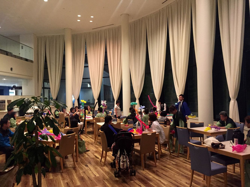 昨日はロイヤル縁日のご紹介をさせていただきましたが、本日はその他のGWお楽しみイベントをご紹介させていただきます!まず、20時からスタートする「バルーンアート風船教室」。20時に近付くにつれてお客様も続々と集まって来られました。お好きな色の長いバルーンを選んでいただいて、河野さんによるレクチャーがスタート!会場は1階のラウンジ「すいせん」でございましたが、ほぼお席も満席状態でした。バルーンで二つの 〇〇 と 〇〇 に挑戦していただきましたね!何を作ったかはご参加いただいたお客様だけのお楽しみです♪お子様が嬉しそうに自分で作ったバルーンを持って帰られる様子を見て、私もとっても嬉しくなりました!続いては20時半から始まる「海ホタルショー」です。まず海ホタルに関する映像をご覧いただいた後、当ホテルで飼育している海ホタルが光る様子を実際に見ていただきます。3日の司会担当は宮崎さんでした。海ホタルについての説明や、どのように海ホタルが光を放つのかなど、お子様でも分かりやすく話されていました。写真はございませんが、グラスに集めた海ホタルに刺激を与えると海ホタルがきれいに光りだします。海ホタルの幻想的な青白い光に、お客様からおぉ!!という歓声が出ていました。こちらは無料のイベントですので、ご興味のあるお客様にはぜひご参加いただきたいです。イベントの最後を締めくくるのは「ビンゴゲーム大会」です。河野さんの司会で始まったビンゴゲーム大会ですが、「ビンゴ」・「シュート」の掛け声でロビーは強風に負けないぐらいの盛り上がりでした。商品にはずれたお客様も、参加賞として淡路島ならではの 〇〇 をプレゼント。ぜひご自宅に帰ってご賞味いただければと思います。さて、本日4日も上記にご紹介させていただいた様々なイベントを開催させていただきます!みなさまふるってご参加くださいませ♪ブログ担当キキでした♪