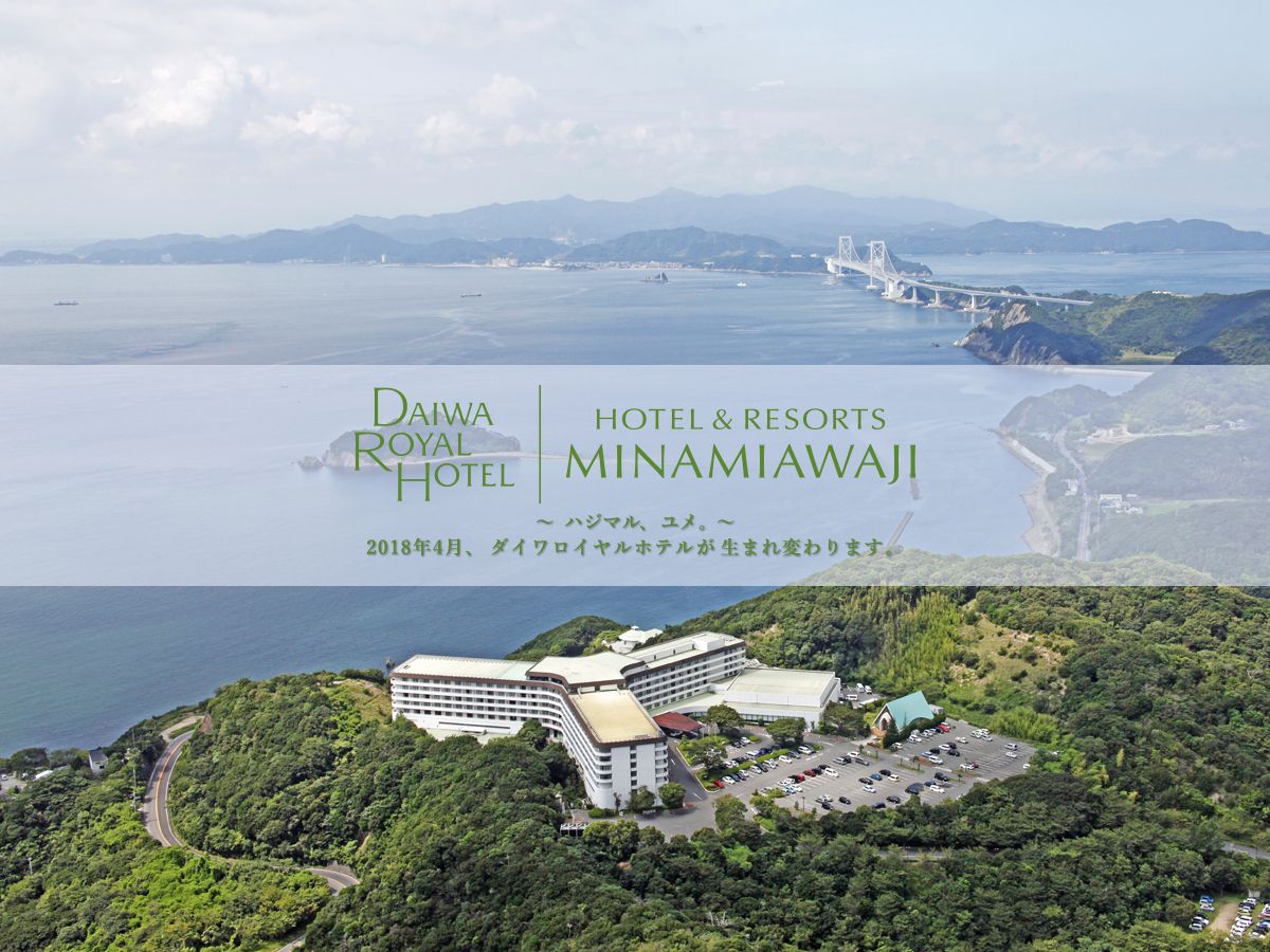 2018年4月1日より ダイワロイヤルホテルズ は DAIWA ROYAL HOTEL に生まれ変わります。今回のリブランドは、地域・ターゲット別にホテルブランドを4つのコンセプトに区分した体制を築くことで、27ホテル各々の個性を持ったホテルを創り、すべてのお客さまにご満足いただける「商品」・「サービス」を提供するためのものです。~ Hotel & Resorts MINAMIAWAJI ~オーシャンビュー、マウンテンビューなど、ロケーションを活かしたサービスにこだわります。エントランスやロビー、ラウンジなど、心おどる空間づくりでおもてなしします。四季折々の行事と連動した、ここでしか体験できない世界を提供します。スタッフ一人ひとりが培った経験と知識で、皆様の“はじめて”をお手伝いします。4ブランド・コンセプトActive Resorts ~ 躍動 ~Hotel & Resorts ~ 別世界 ~THE ~ 誇り ~Royal Hotel ~ 伝統 ~