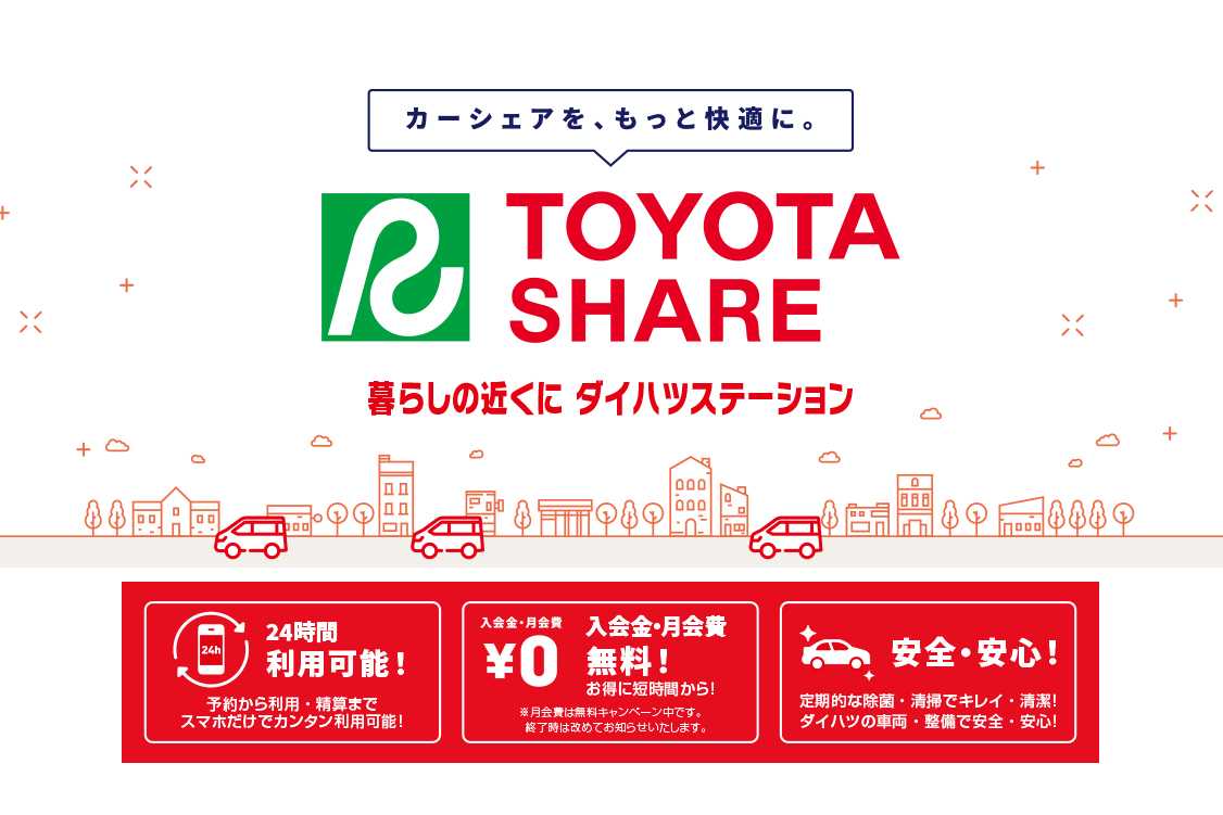 「TOYOTA SHARE」はスマートフォンで予約・利用ができ15分単位から24時間パックまで料金形態があるので、外出・観光など用途に合わせてお手軽にカーシェアで外出いただけます。