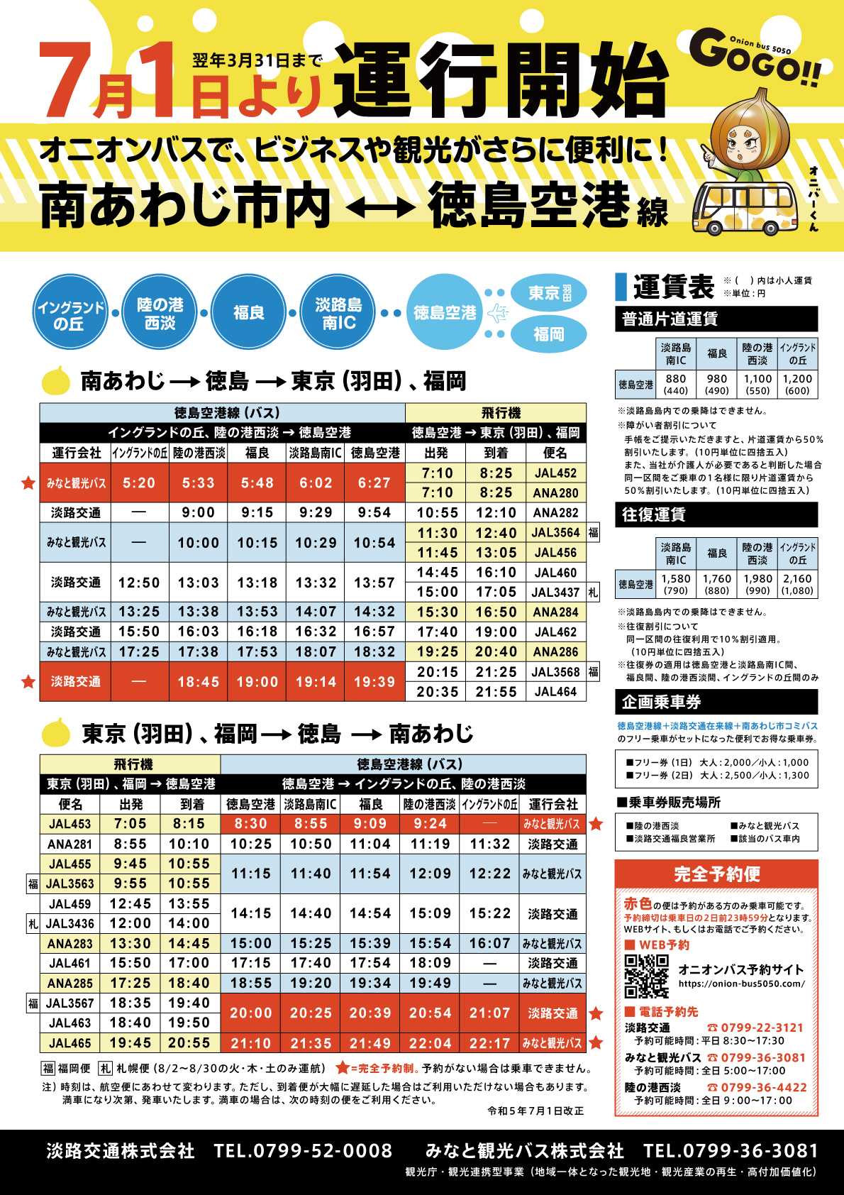 徳島阿波おどり空港~南あわじ市間のアクセスバスが2023年7月1日(土)~2024年3月31日(日)の期間限定で運航されます!