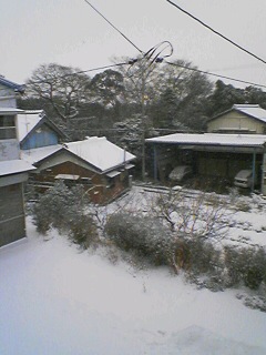 家への上がり口は 15度ぐらいの坂なんです。雪が積もると雪かきをしないと 車では出かけられないんです。この雪で何も出来ないと思うと 何もする気が起こらず ぼーっと過ごした一日でしたが 唯一一生懸命したことが 雪かき。二時半から四時までかかって 雪かきをしました。長さにして10Mぐらいの坂を 十数センチ積もった雪を シャベルと田植えの時の平らにならす道具を使ってしました。雪が少し湿っぽくなり掛けだったので 重くて大変でした。現在の気温は氷点下。きっとまたバリバリに凍てるんでしょう。明日はまた怖い思いするんでしょう。雪国の人達は本当に大変ですね。ご苦労をお察しします。どうぞ、事故のないように雪下ろしが出来ますように 祈ってます。