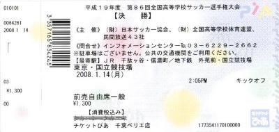 今日は、せっかく千葉にいて休みだったんで、成人式恒例になっている全国高校サッカー選手権大会の決勝を見に行ってきました~サッカーの聖地、『国立競技場』へ行くのは実は初めてなんです埼玉スタジアム2002には行ったことがあるんですけど、サッカー専用競技場じゃないのに選手が予想以上大きく見えたのでびっくりしました 決勝の対戦カードは、全国ユース選手権と2冠を目指す流通経大柏と、サッカー王国の復活を目指す藤枝東の対戦となりました。営業の人に試合の展望を聞いたんですけど、事実上の決勝は千葉県大会の決勝「流通経大柏VS市立船橋」だったんだよと笑いながら言われました営業の人は船橋が地元なんでもう興味がない感じでした それもそのはず今年のインターハイは市船が、ユース選手権は流通経大柏が優勝してるんですしかし相手は、Jリーガーを多く輩出しているサッカー王国静岡県代表「藤枝東」ジュビロのゴン中山、アジア王者レッズの主将山田やドイツ移籍目前の長谷部と言った名選手を輩出している名門校でおもしろい試合になるな~って思ってたんですけど.....試合は、流通経大柏が4点を奪って快勝エスパルスに入団が内定している10番大前を中心に攻撃に人数をかけずにフィニッシュまで守備陣も高い守備ラインをキープし藤枝東に思うような攻撃をさせていませんでしたチームワークの良さを感じました ここまで差があるとは・・営業の言った通りでしたね2年前、野洲高校のセクシーサッカーも感動したんですけど、流通経大柏のサッカーにも感動しちゃいましたおめでとう流通経大柏イレブンまた国立に高校サッカーの決勝、見に行きたいな~