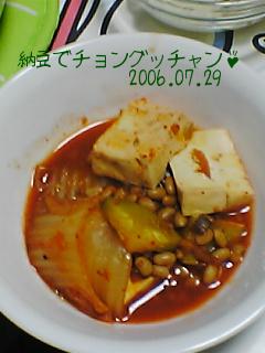 写真は本日の夕食の一部をご紹介。w 似非チョングッチャン。w なんと、納豆で作ってみました。 まぁまぁかな。 でも、彼は最後まで「何かが違う」と言っていた。 味オンチな彼だけどやっぱり韓国人なのね~としみじみ。 食べ終わる頃に、「それ、納豆だよ」って言ったら 「えぇ~!?」ってビビッてたけど。w 水をしっかり切った豆腐に 塩パラパラ、オリーブオイルをかけたもの。 「シンプルなんだけど、豆腐のおいしさがわかる」 って雑誌で見たのを試してみた。w 案外おいしかったよ♪ オリーブオイルかけたものの、さっぱりしててね。 彼は「今度から何もかけないで。 キムチと一緒に食べたいから!」 とまた、韓国人的発言を。。。(ーー; でも、彼は恵まれてると思うよ。 外国に居るのに毎日韓国料理食べてるし。 昼は会社の食堂で韓国料理、 夜は家で食べる時は私の作る韓国料理。 家の冷蔵庫にはキムチ常備、 海苔なんかも必ずある。(出張者からよくもらう。) オジンオチョッカル(イカキムチ), ミョンランジョッ(明太子) などのおかずもたまに入ってる。 (これも出張者からもらう。) 韓国の調味料や野菜(ホバkとか)を始めとする韓国食材は彼経由で手に入るしね。 何よりも、彼女の私が韓国料理好きで良かったと思わない? 彼は当たり前のようにして食べてるけど。 今聞いたら、「良かったと思う」だって。クスクス 今から韓国の映画見ま~す。(ビデオで。) 何を見るのかはまた今度書きます。 (まだ決めてない。w)