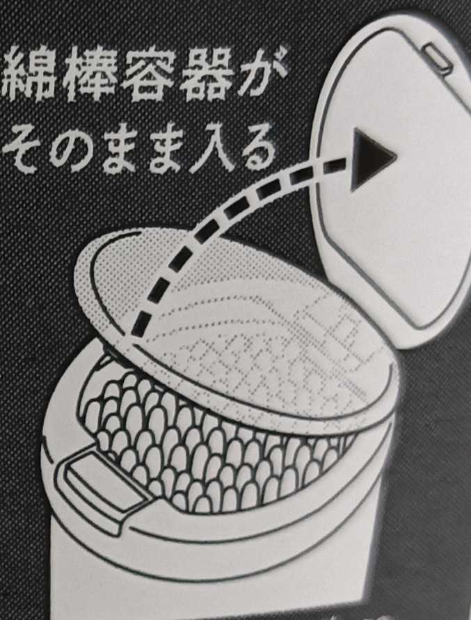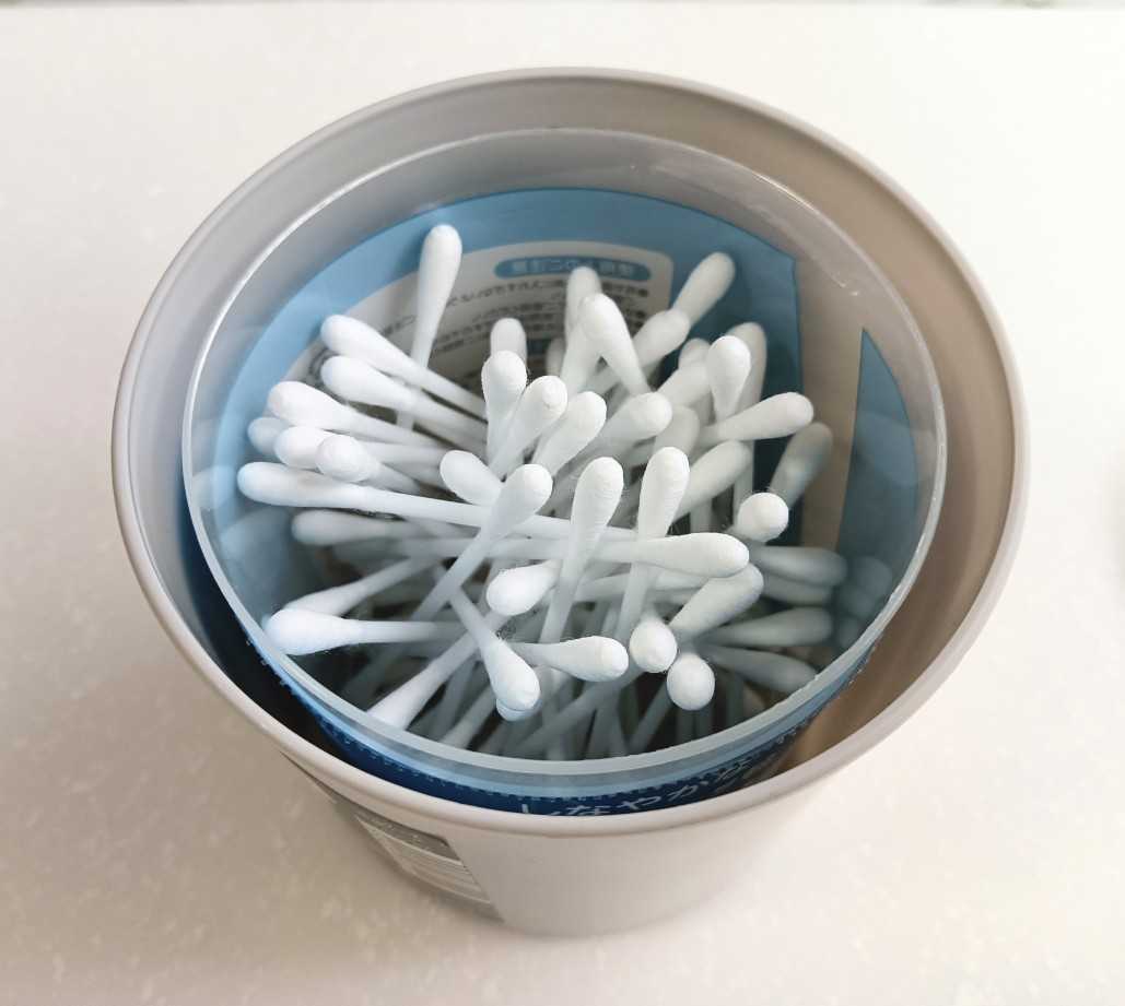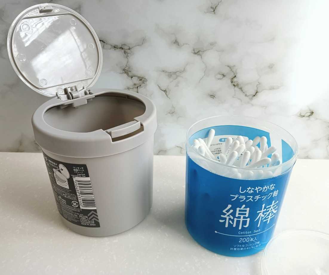 画像の容器入りの綿棒をワンタッチ綿棒ケースに入れてみました。