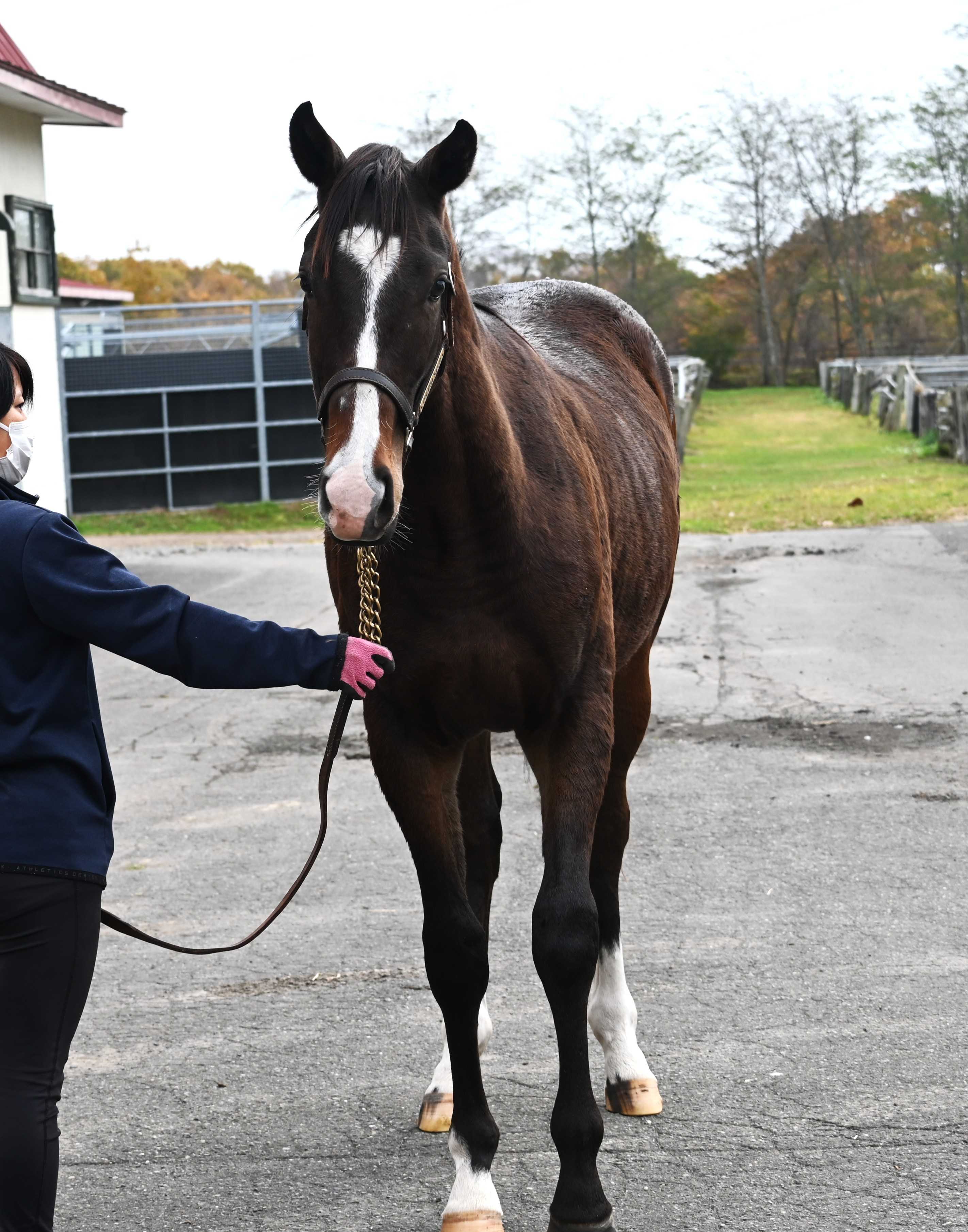 大作ステーブルの放牧地を仲間たちと自由に駆け回るダブルミリオンの2510月30日から5日間、北海道の旅を満喫して無事に戻ってきた:〇 まずは今年7月に急逝したダブルミリオン。設置頂いた墓碑を訪問。これまでの活躍と産駒を無事産んでくれて、我々の馬主活動になくてはならない存在だった。この馬無しでは我々の地方馬主活動も頓挫していたことは間違いが無い。先輩と二人で、これからの産駒の活躍を見守ってほしいと祈りを捧げました。〇 今年生まれたダブルミリオンの25(牡馬、父コパノリッキー)の厩舎を訪問した。母親とは急なお別れとなってしまい、精神的なダメージが残ることが心配されましたが、同じ厩舎のいる同年代の親子と一緒に仲良く放牧されており、ダメージの心配がなくなりホッとしました。いよいよこの時期からすべての当歳馬が母親とは離される運命にあり、条件は同じだ。皆、これからは自分で生きていかないといけないね☆彡〇 ダブルミリオンの25はまだ産毛が抜けきっておらず、芦毛とまだら模様になっており見栄えが良くないが、その毛並みに覆われた馬体自体は、これまでの兄たちとは一線を画す、頑丈な骨格と豊富な筋肉量が素人目に見て取れる。大作STの場長さんも立派な競走馬になるのではと楽しみにされる逸材だ。母親のスピードに父親のタフネスさが加わってダート界に旋風を巻き起こしてくれるかも、なーんて妄想が始まってしまします苦笑。これから色々なことがあるでしょうが、何とかクリアしていってほしいですね。〇 ダブルミリオンの22(父ダノンレジェンド、馬名レジェンドネオ号)については翌日の朝、大作ステーブルの隣にあるクラックSTを訪問し、調教の様子を見させていただいた。クラックSTには9月から実戦に向けた調教をお願いしている。事前の情報では。やはり1年半以上休養を余儀なくされていたので、「トモの筋肉がぐにゃぐにゃで、とても怖くて人を乗せられない(byST場長さん)」との状況で、期待していた年内の川崎競馬へのデビューはとても難しいと思われていたようだ。〇 10月末から漸く人を乗せて調教ができるようになり、今回は坂路コースを2回、2回目は1F18秒ほどのゆっくりしたペースながら調教を見せて頂くことが出来ました。入厩当初よりはだいぶ走れるようになってきたとのご評価もいただいており、年内レースデビューは難しくとも、12月の能力試験受検に向けて、鋭意トレーニングを進めて頂くことになりホッと致しました☆彡坂路コースを力強く駆け上がっていくレジェンドネオ号〇 約1年ぶりのj北海道であったが、広大な自然の中で成長をしている馬たちを見られて、来てよかったと思いました。多少体調に不安もありましたが、先輩のエスコートもあって、問題なく4日間を過ごせました。私も順調に治療を進めて、来年はもっと楽しめるようにしたいです☆彡突然見知らぬ馬がやってきてカメラの視野に、あんた誰(笑)??