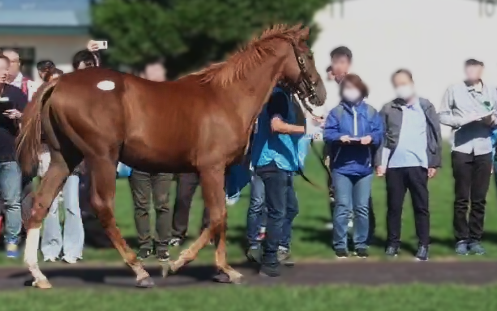 今年もノルマンディーOC募集馬見学会は盛況だったようです(写真はウッドシップの24)9/27の募集馬見学会。参加された馬友さんから注目馬の情報を頂いた:〇 9/27(土)日高軽種馬農業協同組合北海道市場においてノルマンディーOC24年産1次募集馬36頭の見学会が実施されました。私は都合により行けなかったが、馬友さんが参加されて注目馬についての情報を送っていただきましたので、ここにシェアをさせて頂ければと思います。〇 No.1 ノーブルレディの24 父Mystic Guide 3,500万円(7.0万円/口) :この馬友さんもノーブルロジャー号に出資をされているのでやはりその弟は気になるところだったようです。送られてきた写真を見る限りは、鹿毛ということと全体の筋肉の付方がふっくらしている印象でかなり兄とは違ったイメージを持った。馬友さんも同様のイメージを持たれたようで、馬体からは余り引かれなかったとコメントをされていましたね。ノーブルロジャー号の筋肉の付き方は独特のものがあってそれはやはり父Palace Maliceならではのものなのかもしれません。〇 No.18 ヴォレダンルシエルの24 父マジェスティックウォリアー 2,600万円(6.5万円/口)本馬はサマーセールにおいて1,550万円(税抜)において購入された。サマーセールにおいてノルマンディーFが落札した価格の3番目に高い金額でこの募集価格はやむを得ないところだろう。金額は3番目であるが、牧雄代表の評価ではサマーセールで落札した中では一番いい馬との由。おそらく昼食会の席で牧雄代表が参加された会員さん向けにお話をされたのだと思いますが、この馬はサマーセール最高額購入馬のアズマクイーンの24(2,300万円)より自信があるとの説明をされたらしい。良いと思う理由については、歩様が良く、地に脚が付いている時間が長いということで、同様の特徴はアーモンドアイやサイレンススズカにも見られたとの由。歴代の名馬と比べられたら、それは凄いとなるでしょう。その馬友さんも、素直にこの馬から行こうかなと言われていました。牧雄代表の推しは売行きにダイレクトに影響するのでこの馬は先行募集で満口になってしまうのかもしれません。ヴォレダンルシエルの24馬友さん、どうもありがとう!!引き続き各馬の情報が公式ページにアップされるのを楽しみにしたいと思います。