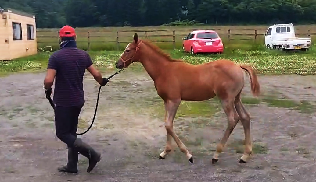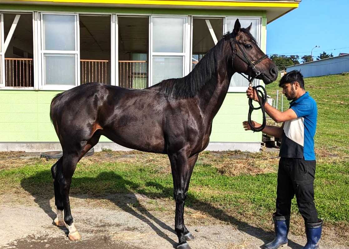 調教前にコースで僚馬とダグを踏むフルミネビアンコ号(25年8月28日、川崎小向厩舎)本日、川崎の調教師さんと現在預託している2頭の状況について確認した:〇 フルミネビアンコ号(ダブルミリオンの23、父フリオーソ)は、8月に入厩後、すぐ調教で落鉄をして爪がはがれて10日間休んだ影響で、まだ速い時計を出すまでの状況には至っておらず、調教師さんにより、当初予定していた今週の能力試験はもう少し時間が欲しいとのご説明を受けました。ここで無理をする必要も無いので、じっくり仕上げていってほしいですね。10月のデビュー延期となりますが致し方ありません。〇 一方、オークションで落札したクリップクロップ号に付いては、順調に調教が進められており、今週川崎開催期間が終了後の13日に中間の時計を出すことになりそうです。クリップクロップ号に付いては予定通り10月の川崎開催で南関デビューを行う方向で進められます。頑張って☆いずれこの2頭の調教を見るために9月中には川崎小向厩舎を訪問したい。調教師さんとは9月下旬あたりから、週1回の定例情報交換会を行い調教状況のタイムリーな吸い上げを行って参ります。その他、北海道にいる他の子供たちの現状をまとめてみる☆彡〇 レジェンドネオ号(ダブルミリオンの22、父ダノンレジェンド)は1年以上の休養から漸く立ち上がり事が出来、8月下旬にクラックステーブルにて調教が再開されたとの由。ここで2,3か月充分鍛錬をして、直接川崎に送り込みたいということのようです。〇 川崎の調教師さんによればレジェンドネオは一回りスケールが大きく、川崎での走りに期待できるとかなり熱が入っておられます。おそらく川崎入厩は11月、年内デビューができるか否かぎりぎりのところかと思料しますが、その時期になると有力馬がいないため、暫く連勝も期待できると!!それは大変ありがたい話ではありますが、まずは無事にデビューができることを祈っております。〇 心配なのは、ダブルミリオンの24(父エピカリス)。放牧中に外傷を負い、それが原因で重い感染症にかかっているとの連絡が先日大作さんからありました。獣医さんも色々抗生物質を与えて頂いている様なのですが、一向に良くならず弱ってきている状況だと。薬に対して耐性を取得しているなら、厄介なことだ。自分の免疫力で治していくしかない。ただただ祈ります。。。。フルミネビアンコさん、9月中に会いに行きたいですね!!