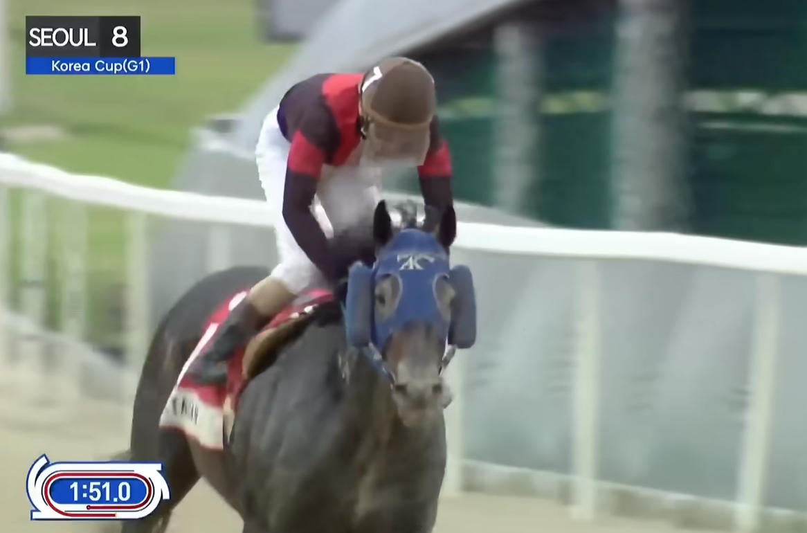 コリアカップ2025のレース:ゴールインした直後のディクテオン号☆彡<ラジオNIKKEIニュースより引用>コリアカップ(G3)で大井のディクテオンが優勝7日(日)に韓国のソウル競馬場で行われたコリアカップ(G3 ダート1800m)で、ディクテオン(大井)が優勝した。JRA勢はラムジェットが3着、ドゥラエレーデは5着だった。また、コリアスプリント(G3 ダート1200m)ではチカッパが2着、タガノビューティーが5着、サンライズホークは7着だった。優勝したのはセルフインプルーヴメント(香港)だった。〇 ディクテオン号:Diktaean セ7歳 黒鹿毛 父 キングカメハメハ 母 メーデイア(母父 キングヘイロー) 生年月日: 2018年3月10日 調教師 : 荒山勝徳 (大井) 馬主 G1レーシング 募集情報: 1口:150万円/40口 生産者: 追分ファーム - 獲得賞金 (中央) 8,136万円、 獲得賞金 (地方) 1億9,666万円 通算成績: 29戦9勝 [9-1-3-16]、 主な勝鞍 23'浦和記念(G2)〇 コリアカップは1着賞金、約8,000万円💰💰だそうです。中央から大井競馬へ移籍して、今年も川崎記念や帝王賞で好走して健在ぶりを示していましたが、ここに来て遂に大きいタイトルを取りました。このレースでは中央からラムジェットやドゥラエレーデも参戦した中での勝利故、価値があります。〇 このディクテオン号の今日の成功は「中央から地方(南関)への積極的な移籍」が実を結んだ事例と捉えることが出来るのではないか!?元々吉岡厩舎の所属馬だったが、この馬の地方での適性を見抜いて吉岡師の方から大井の荒山師に移籍を持ち掛けて実現した経緯を聞いたことがあります。〇 出資者の方々には、1口150万円も出資したのに南関への移籍に納得されない方もおられましたでしょうが、見事国際重賞を勝つまでになったのですから、先見の明があったということですし、管理される大井競馬・荒山師の能力も我が共有馬シンギングブルースにおいても垣間見れますが、さすがだということですネ。〇 直線では大外からただ一頭、勢いよく追い込んで来たのがディクテオンだった。前半は後方から促しながらの追走で、徐々に先団を視野に。勝負どころでも早めに手が動き出したが、直線での差し脚は確かなものでした。さすがは南関No.1ジョッキー、落ち着いた矢野騎手の騎乗が見事でした☆彡7歳馬ですがセン馬ですから、まだまだ現役を続行されるものと思います。応援しています!!