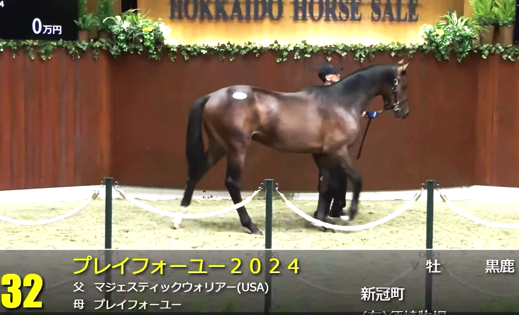 セレクションセールNo.32 プレイフォーユーの2024(父マジェスティックウォリアー)いよいよ、9月も後半戦へ。ノルマンディーOC24年産の募集開始時期が近付いてきた:〇 もちろんベースとなるのが母体である岡田スタッド生産馬になるでしょうが、近年はセール購入にも力を入れており、特に海外フロリダのセール購入馬からはノーブルロジャー号のようなオープン馬を出すなど、ノルマンディーFのBuyerさんの馬を見る目は一味違うともっぱらの評判だ。〇 国内セールでも、今年の3歳馬レクスノヴァス号(父キタサンブラック)はセレクションセールの出身で、来月の菊花賞へ駒を進めるなどこの世代の出世頭となっている。セレクションSの上場馬達のクオリティはサマーSやセプテンバーSとは一線を画すレベルにある。今年の落札馬4頭についても注目をされなければならない。4頭のセリを抜き出して動画にまとめてみた。セレクションセール2025でノルマンディーFが落札した4頭1頭ずつチェックしていこう☆彡〇 No.32 プレイフォーユーの24 父マジェスティックウォリアー 購入金額:1,760万円この馬はセレクションセールの中でも今年から新たに設けられた初日の「プレミアムセッション(選抜された上場馬の中でもより厳選された馬たち)」に上場された。黒鹿毛の馬体、素人にも馬っぷりがよく見えたしセリが開始されてすぐに方々から声が掛かって活発なセリが展開された。おそらくダートを主戦場とすることになるが馬っぷりの良さで注目を集めそうだ。ズバリ募集予想価格は2500万円。〇 No.105 ダヴィダの24 父Tiz the Law 購入金額:1,650万円最初セレクションSの購入馬リストを見たときに真っ先に目が行ったのがこの馬。父Tiz the Lawといえば、当クラブの3歳馬のファムエレガンテ号がダート短距離で4戦2勝、前走も昇級初戦の2勝クラスで2着と大健闘をしている。この購入馬の母父のアニマルキングダム号はドバイWCの覇者。血統としてはこの上ない魅力なんだが。どうもセリを見るとノルマンディ―Fしかオファーを出さなかったようだ。他のBuyerさん達には響かなかったのか、気になるところ。募集予想金額は2,360万円☆彡〇 No.125 ハマナスの24 父ルウァンスレーウ 購入金額:2,145万円この4頭の中では最も高額での購入馬だ。事務局はいくらで募集価格を設定するか頭を悩ませておられることでしょう。ルヴァンスレーヴは現役時代3歳で古馬相手のチャンピオンズカップを勝利した砂の怪物で種牡馬成績もあのナダルには及ばないが種付け料150万円で健闘していると言えるでしょう。母父キンカメと底力も備えており、兄たちもJRAで活躍したり、大井で5連勝する馬もいるなど申し分なくこの仔も大いに期待できる。募集予想価格はズバリ、2,960万円と見る。〇 No.363 オムスビの24 父ダノンレジェンド 購入金額:1,870万円セールの最終段階、皆さんにお疲れが見える中に登場、しかしこの馬の登場で一気に活気が戻ってきたセリになった。冒頭のアナウンスでも紹介されたが、あのサヨノネイチヤの全弟だ。サヨノネイチヤは昨年大井で7連勝、その勢いで帝王賞まで駒を進めた。獲得賞金が既に1億円を超えている。その弟ということで人気を集めた中、ノルマンディーFが競り落とした。ダノンレジェンドも種牡馬の世界でたいそう出世したもんだ😲。この馬も落札金額から2,640万円の募集金額を予想する。ここれら4頭の中から、走る馬が出てくるような気がいたしますが、さあどうでしょうか??