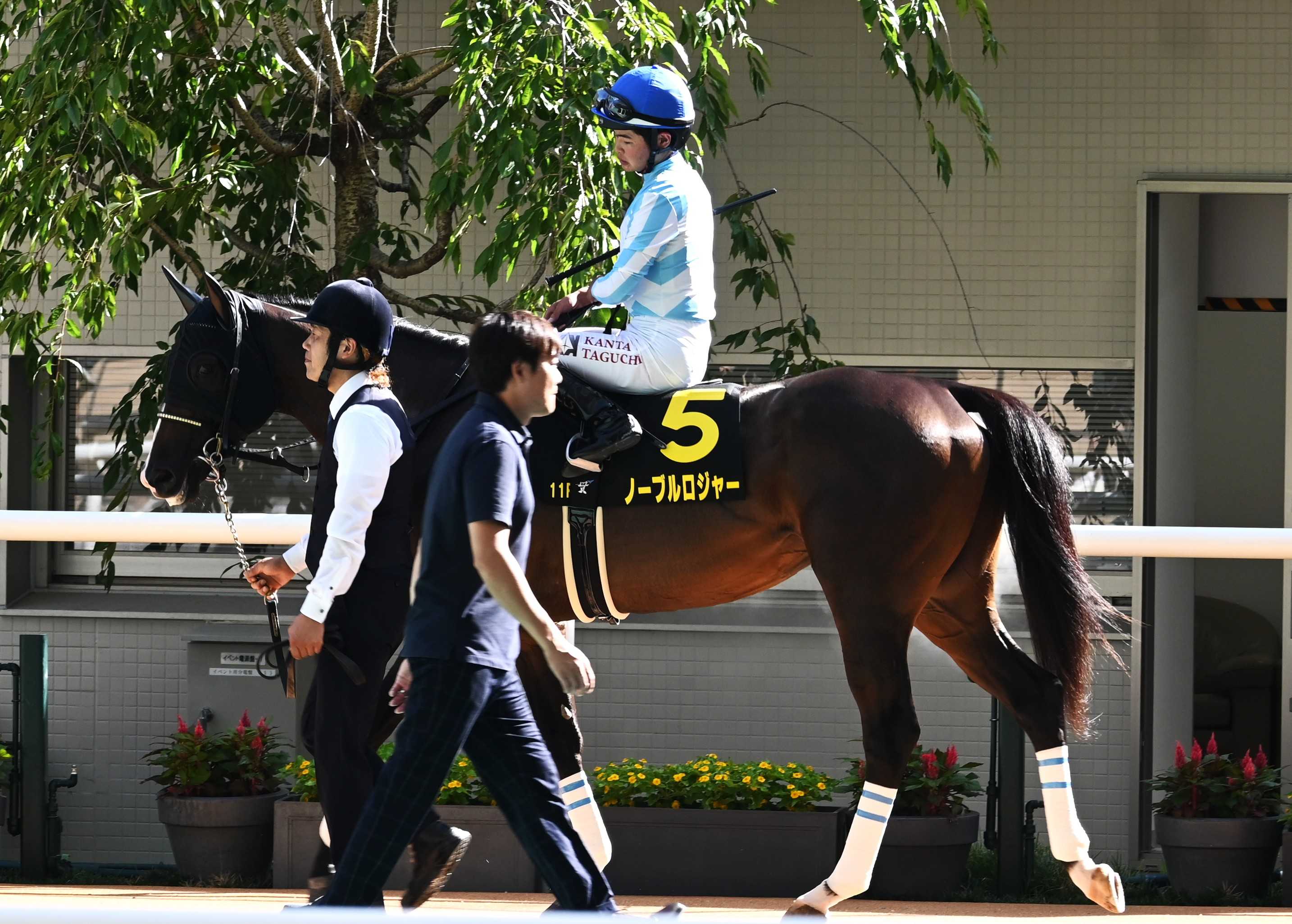 本場馬入場後。石川騎手を鞍上にキャンターに入るノーブルロジャー号(ミノルロドリゴ撮影)★10/26(日)東京・神無月ステークス(ダ1400m)石川裕紀人騎手 結果4着:〇 4着。馬券内は逃すも掲示板を確保する4着。でも今回は4着のという数字以上に実りのある結果。今後の彼の活躍に明るい前途を感じさせる内容であったのではないだろうか??〇 ダート3戦目でこれまでスタートが良くて先行が持ち味であったこの馬の脚質に対して、吉岡師と石川騎手が話を行って、後ろに控えて脚を溜める競馬を試されたこと、そしてその作戦が奏功し最後200mから目の覚めるような末脚を繰り出し、上位と全く差のない4着という結果を出したことだ☆彡〇 私はいつものようにNikon Z50(zoom付き)越しにレースを見ていてスタートして後ろに下がった時は、また(キックバックで)やらかしてしまったのか、と半分諦めの境地にもなった。そして直線外に出したが先頭とは随分と距離があり、とても届かない、今回も7,8着か、と思いながら高速シャッターを押していたら、隣の息子の叫び声が、ノーブルロジャー号の一完歩ごとに大きくなって、ゴール前では絶叫に変わっていた。そう、後50mもあれば前を行くインユアパレス号は捕らえていたと思う。2,3着馬とはほぼ同じ脚色だったけど3着以内は確実にあったでしょう。あと少し直線があれば完全に馬券内。。。でもよく頑張りました!!〇 ダート転向後、3戦目で7→6→4着と少しずつであるが確実に前進を続ける我らがノーブルロジャー号。課題のキックバックについても、レース後石川騎手が「一瞬怯みはしたものの、一度プッシュしたらその後は気にせず、しっかりハミを取って進んでいけた。」と克服しつつあるとの由。直線ではしっかり脚を使ってくれましたし、東京は合っていると力強いコメントを頂いた。〇 更に脚を溜めて直線脚を使うという新たな一面を見せてくれたので、距離の融通性もあると解釈が出来そうで、今後使うレースの選択肢が増えることにつながりそうだ。残念ながら3着以内に入れなかったのでオープン競走における出走優先権は得られなかったが、余り詰めて使うと良くないタイプなので、少なくとも今回の6週間くらいの節がちょうどいいんでしょう。〇 年内、1400m~1700mくらいのダート戦を使って結果を出せれば、来年はサラブレッドとして完成を迎える5歳馬、重賞路線を歩み、充実した1年につながるのではないか。今日だけの結果で気の早い話かもしれないが、毎回、全力で走り続けるノーブルロジャー号には結果が付いてきてほしいと願っています🥺。今日は良いものを見せて頂きました。ありがとう!!ノーブルrジャー号さま、次走はどこへ向かうのか?楽しみにしています!!