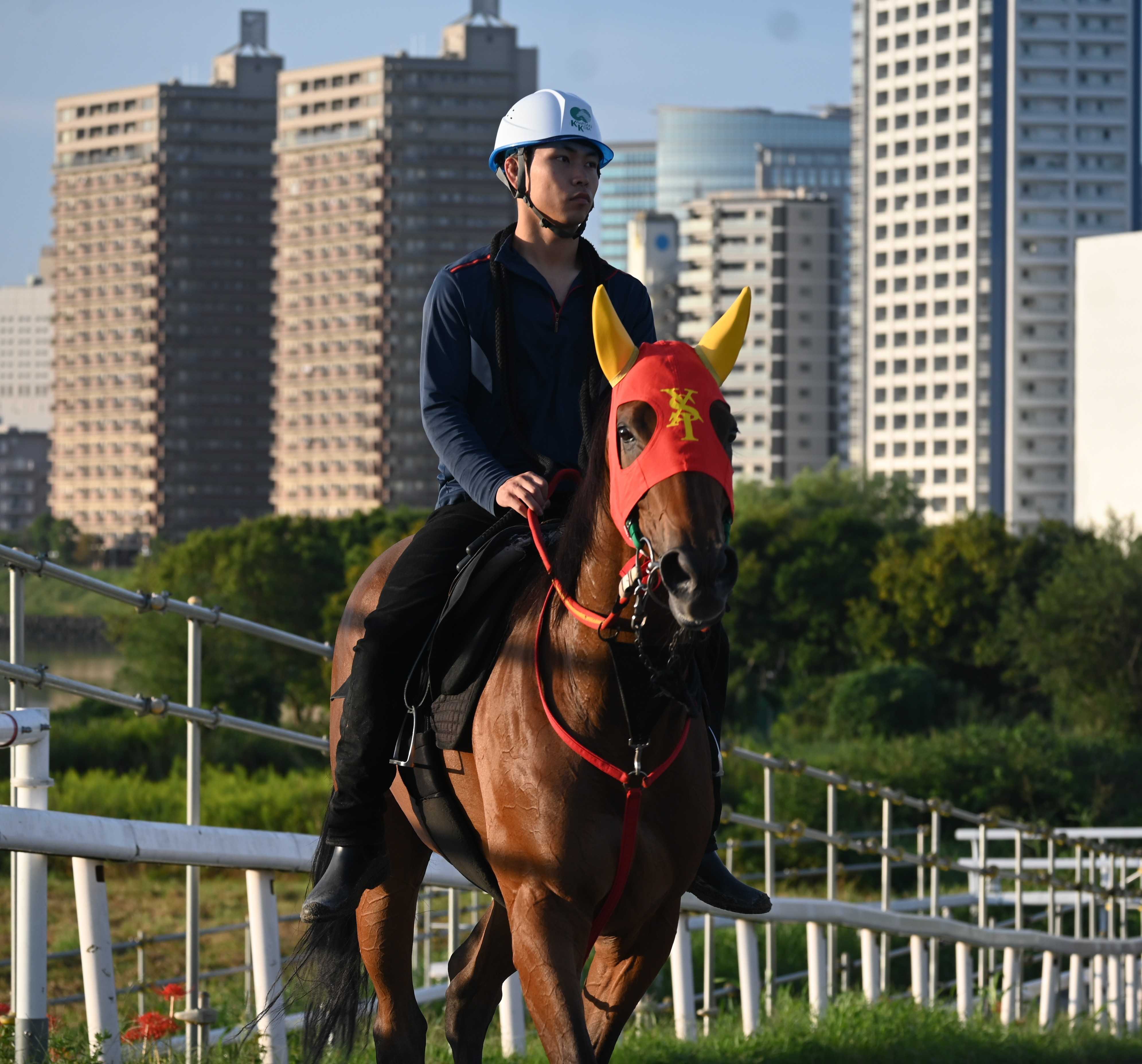 川崎の土手に立ち信号待ちするクリップクロップ号、背景の高層ビルとの対比がユニークだ☆彡本日、川崎小向トラックコースまで出向き所属する2頭の調教を見させていただきました。〇 朝目覚ましを4時に合わせて起床。前日の夜息子からは仕事の関係で参加できないとのLINEが来ていた。まあ仕方がありません。先輩の車で小向厩舎に到着したときはまだ周囲は薄暗かった。これが真冬だったら来れなかっただろうな、ほんと、馬に携わる方々のご苦労がしのばれます。〇 既に厩舎に到着した時は、6時から調教を開始するクリップクロップ号が馬房から出されて馬具を装着され始めておりほどなくしてトラックコースへ。今日は1周1200mほどのコースを2周して、2周目に4F、54秒くらいの時計で単走で追われました。〇 単走で追われたので他馬との比較が難しい部分がありますが、動き自体はきびきびとしていて良かったように見えました。調教師さんに伺いますと、来月の第7回川崎開催の最終日、17日(金)の3歳、1400m戦に出走する予定との由。来週さっとやれば仕上がりそうですね。〇 クリップクロップ号の調教が終わって、堤防の土手から厩舎へ戻っていったあと、今度は2歳馬のフルミネビアンコ号の調教が始まった。フルミネの方は他厩舎の2歳馬との併せ馬。こちらの方も2周目は最後の2Fを13~14秒台近くで追われて土手から見ていた我々にもかなりの迫力をもって伝わってきました。2周目迫力のある動きを見せたフルミネビアンコ号(向こう側)〇 フルミネビアンコ号と併せ馬していたのが既にデビューをしている2歳馬で、負けていませんでしたし、跨っていたのが先日の懇親会に来てもらった若い助手さんだったのですが、彼に聞いても今日の追い切りの動きは良かったと高評価を頂きました。「乗るたびに良くなってくる印象がある。」との嬉しいコメントが聞けました。フルミネビアンコ号の本日の追い切り2周目〇 フルミネビアンコ号は予定通り10月の能力試験に向かいますが、これが先ほどのクリップさんのレースがある17日の朝7時半から行われるようで、17日は朝の能力試験から夜のレース(発走時刻は17時半ごろ?)まで忙しい(中抜きの時間が長ーいけど苦笑)日となりそうです。両馬の無事と健闘を祈っております☆彡