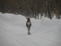皆さんこんニャちわん!・・・さぼりん爺だニャン・・・今日は今年休みのたびに除雪作業に行ってるお山へ・・・ニャンと・・・道路をエゾ鹿さんが・・・歩いてるんです・・・・おもわず・・・あせりの中・・・カメラ・カメラと手に取る爺がいる・・・たしか・・・鹿猟が行われてるはず・・・追われて出て来たのかな・・・