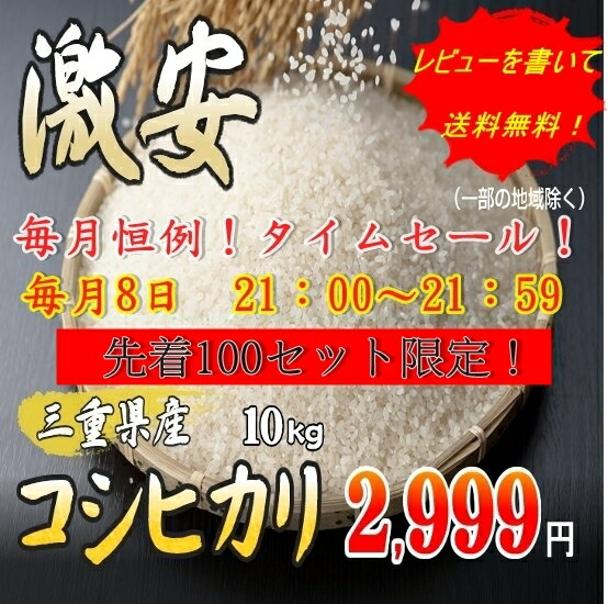 今日これがあったんだ!このお米美味しかったですよ~♪この値段にしちゃあレベル高い!お米袋も紙袋で味があって。5kg×2個で届くのもグー^^毎月限定で30個販売してるけど、3,4,5月はお休みでしばらく販売ないから買おうかちょっと悩む~。お米は来月のマラソンでポチりたいなあと思ってたし‥(^。^;)今回は100個の販売だからしばらく残ってるかな。。21時~10kg2,999円込お米【毎月恒例タイムセール】【レビューを書いて送料無料】平成25年産 三重県産 コシヒカリ(白米)【限定商品】 10Kg ※北海道:1,000円~ 沖縄県:1,500円~ その他離島:2,500円~別途送料かかります