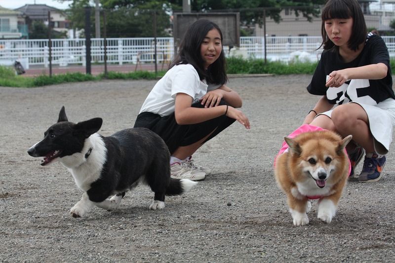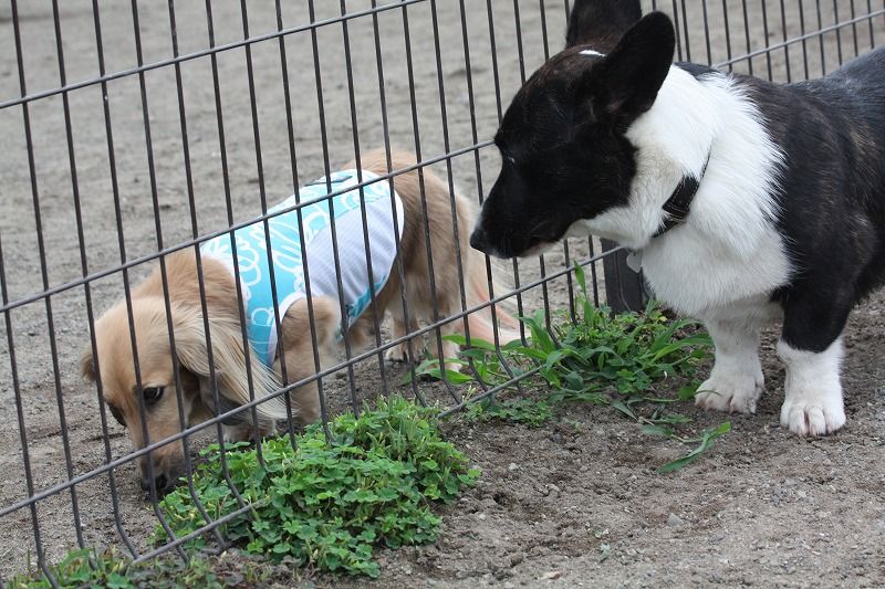 カーディガンコーギーのむぎちゃん、ジャックラッセルのサラミちゃんが